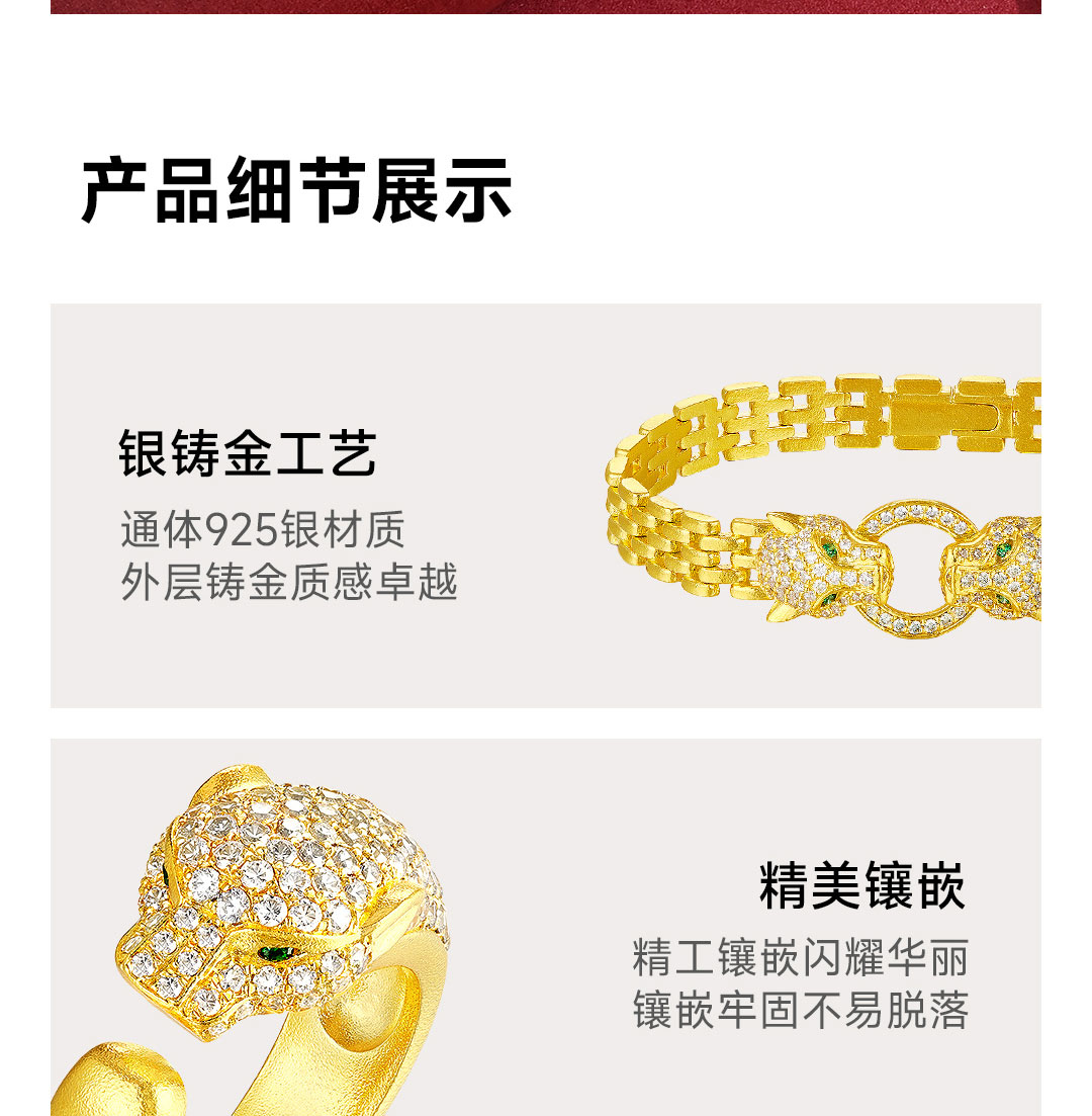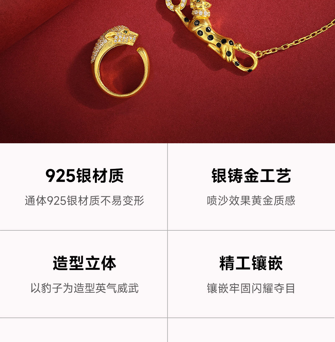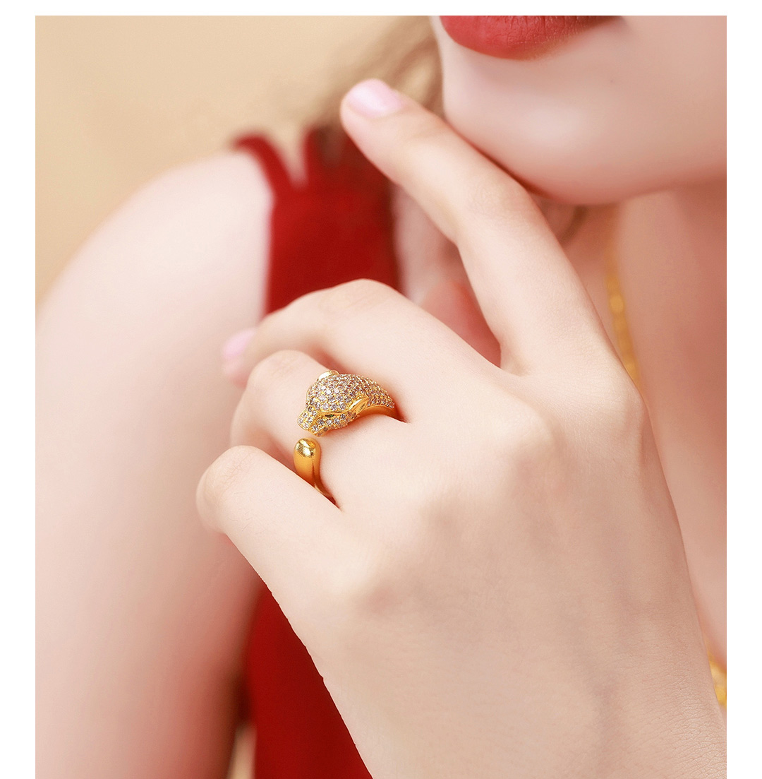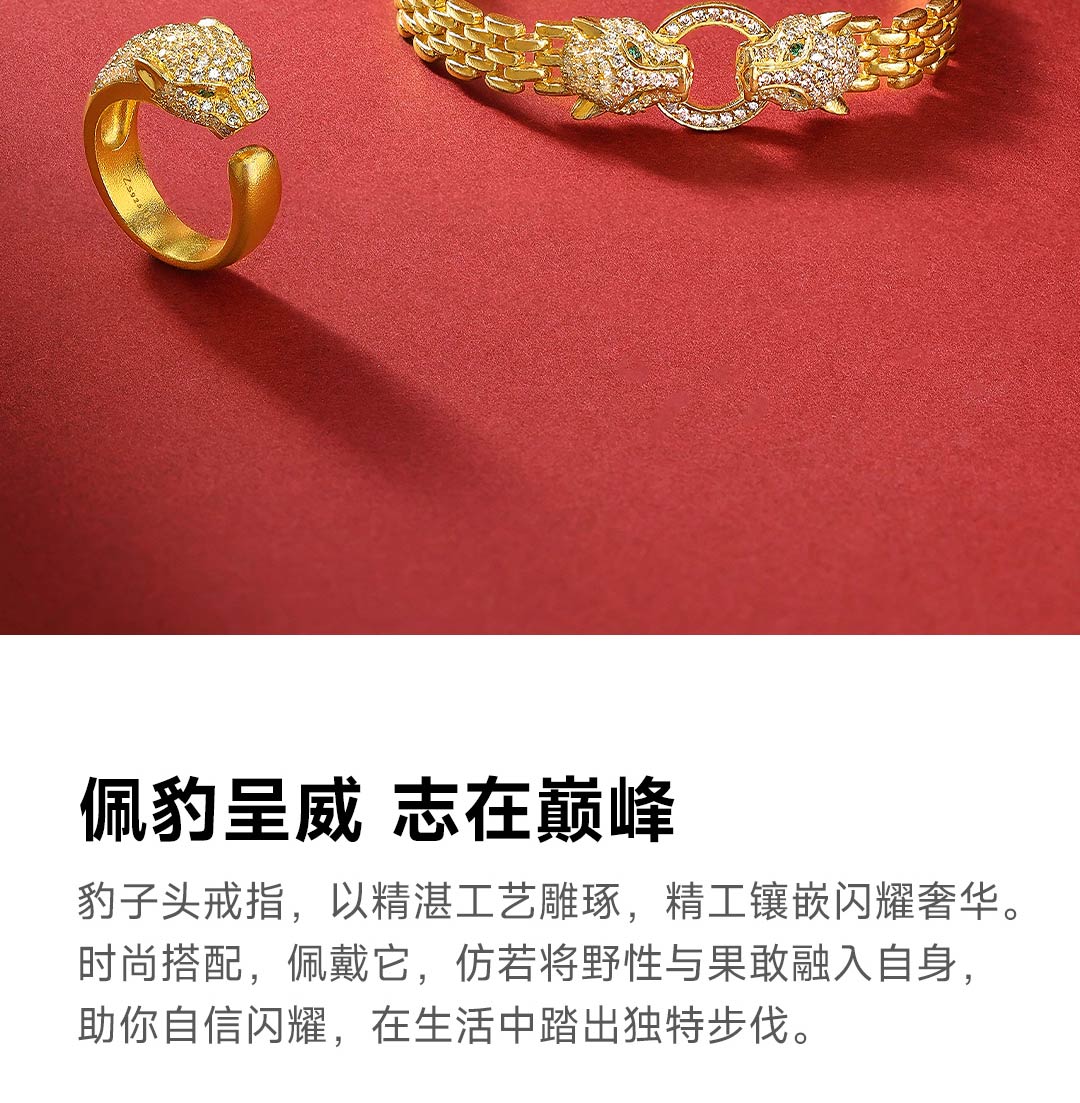 戴时光 银铸金豹子头戒指(内指圈约5.5cm)