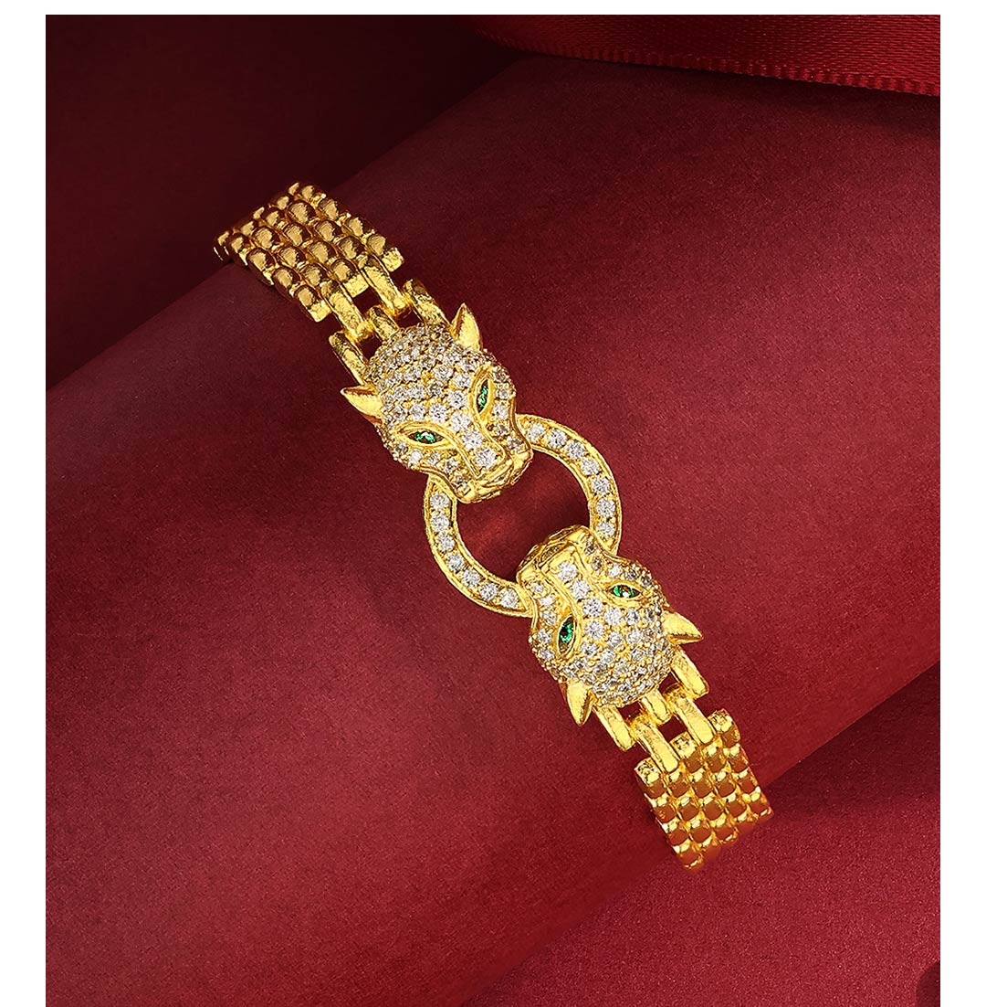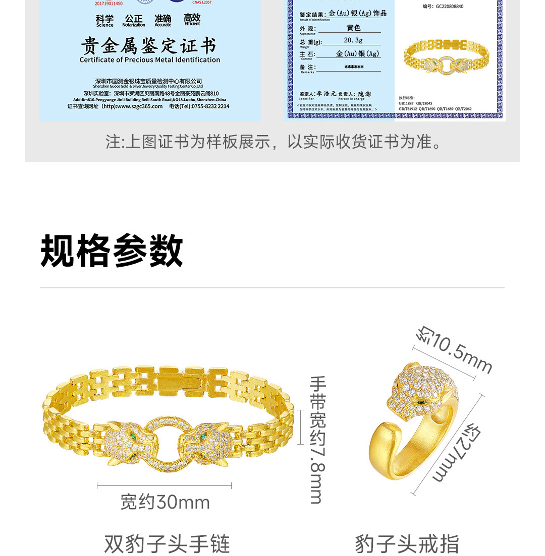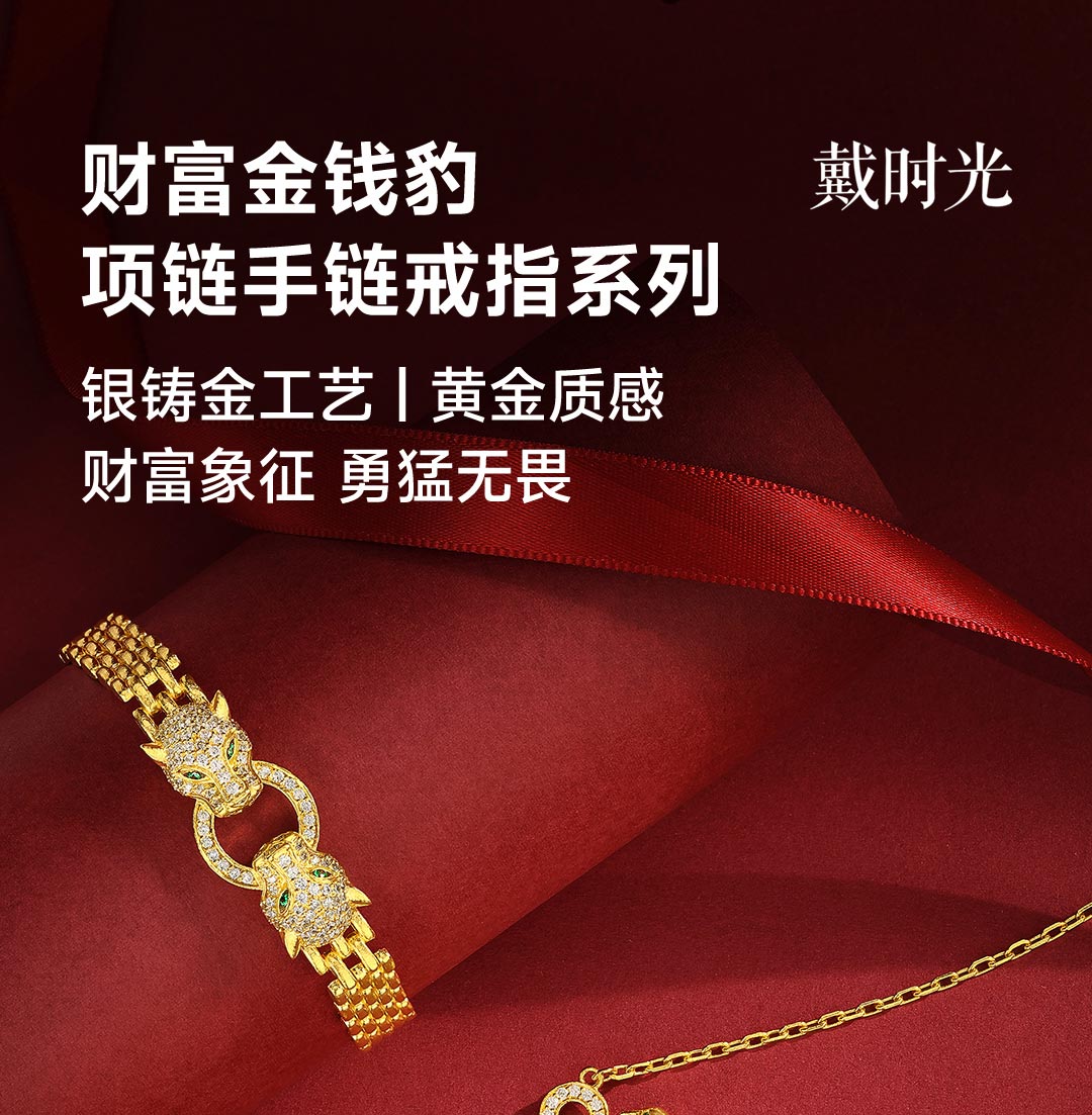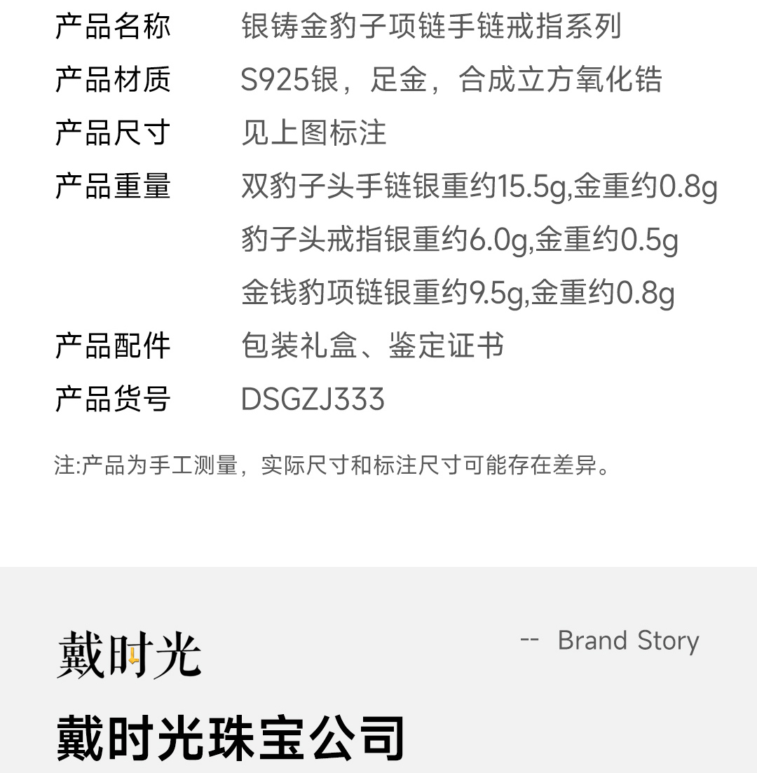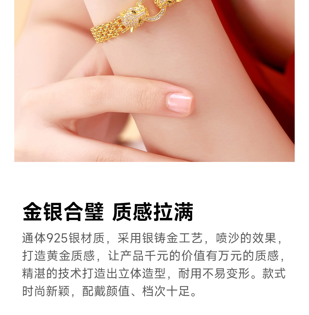 戴时光 银铸金豹子头戒指(内指圈约5.5cm)