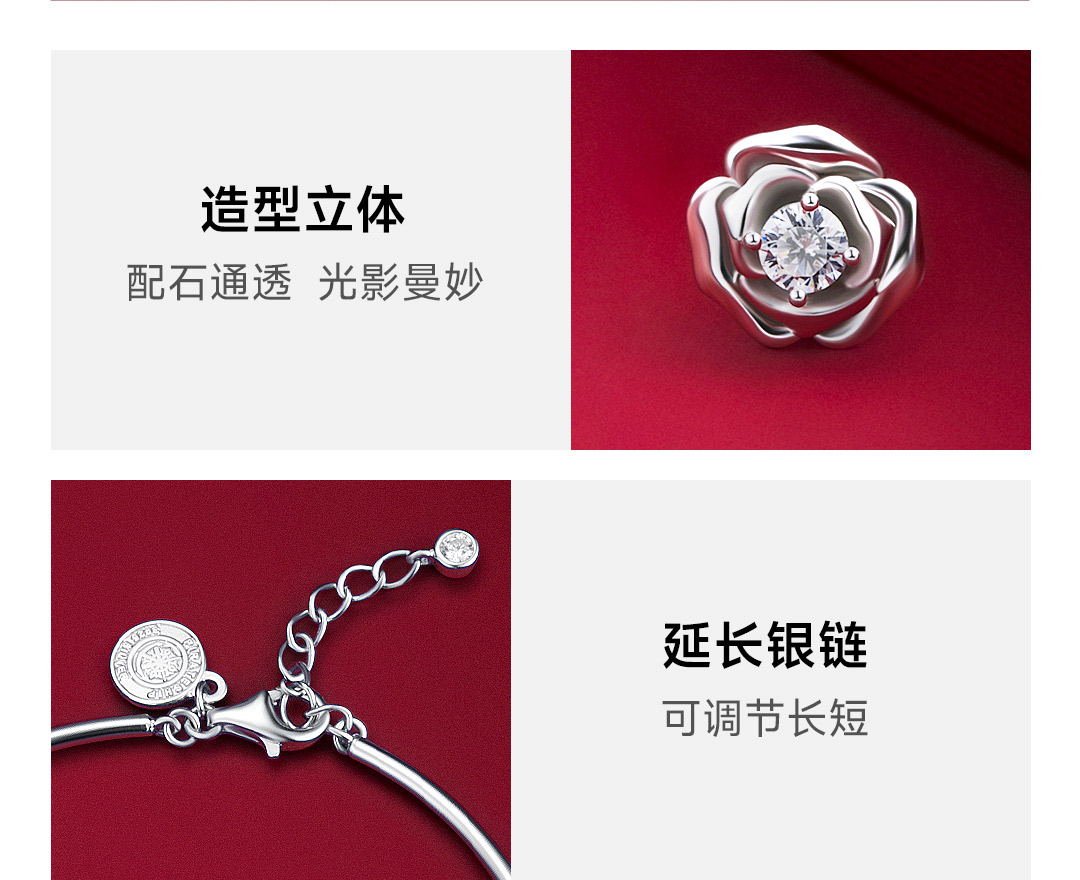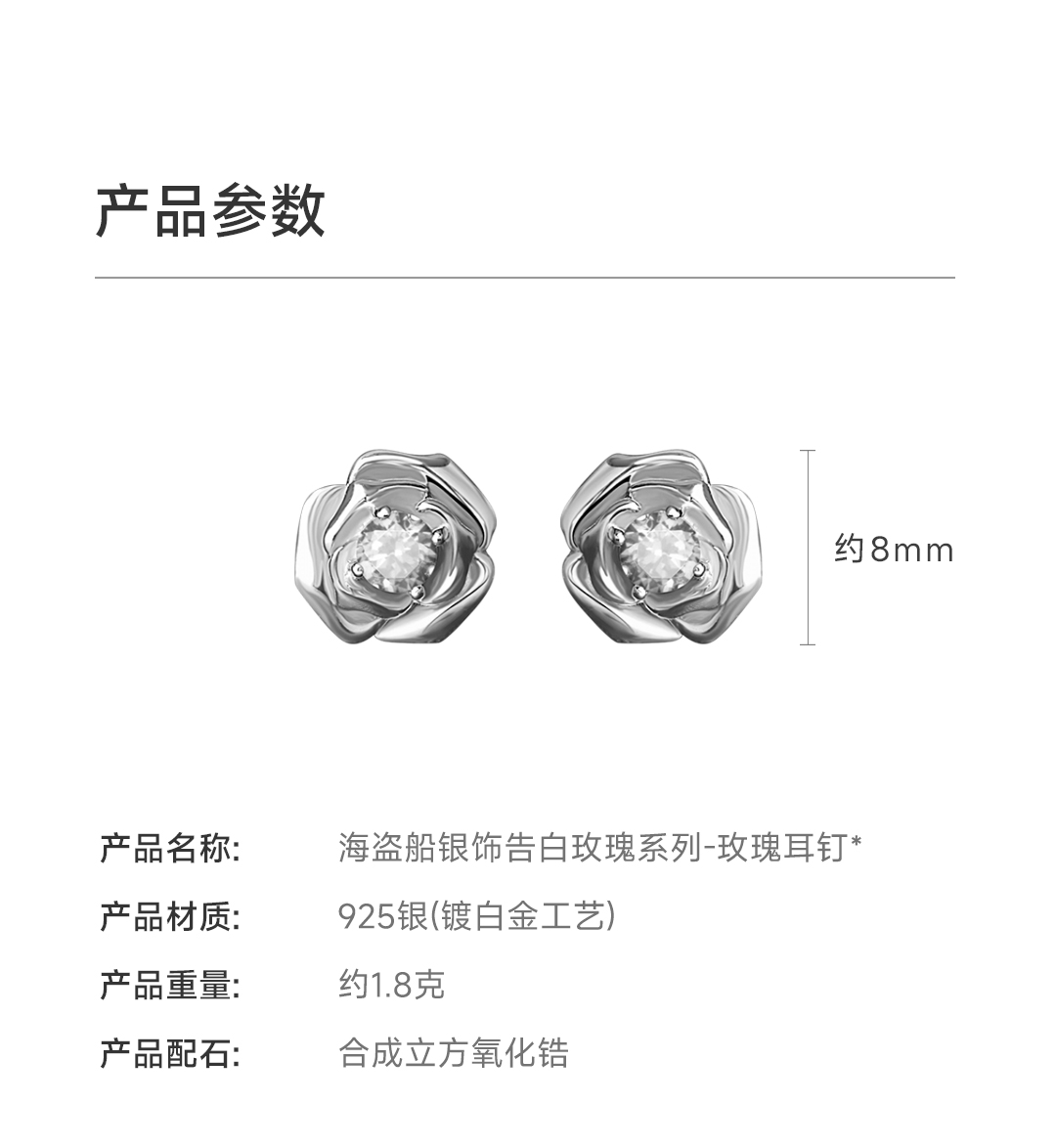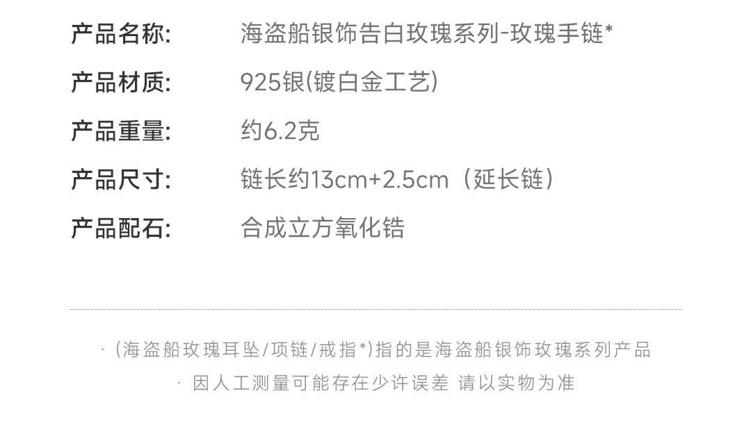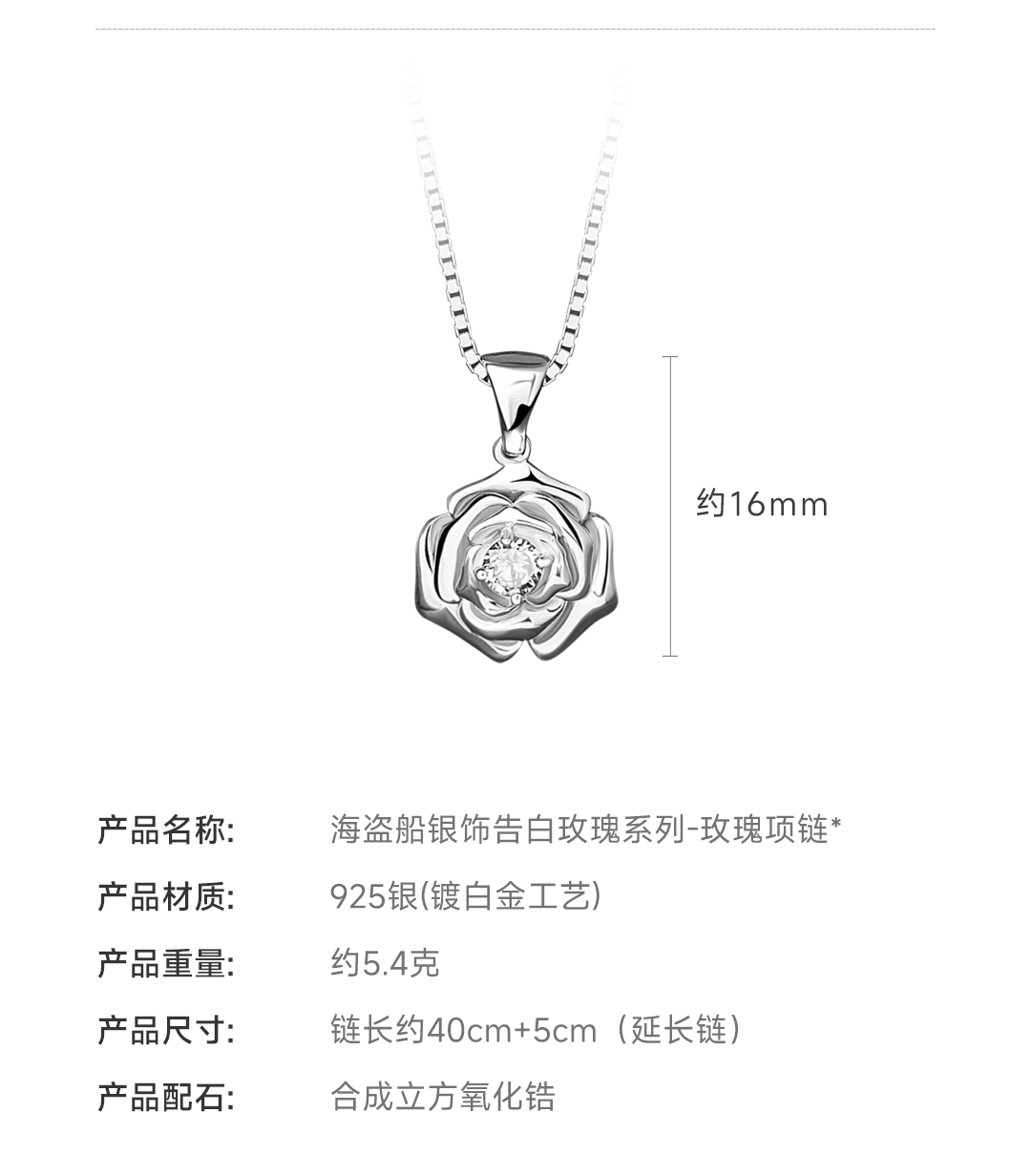 海盗船 告白玫瑰系列礼盒银项链/耳钉/手镯 玫瑰花耳钉