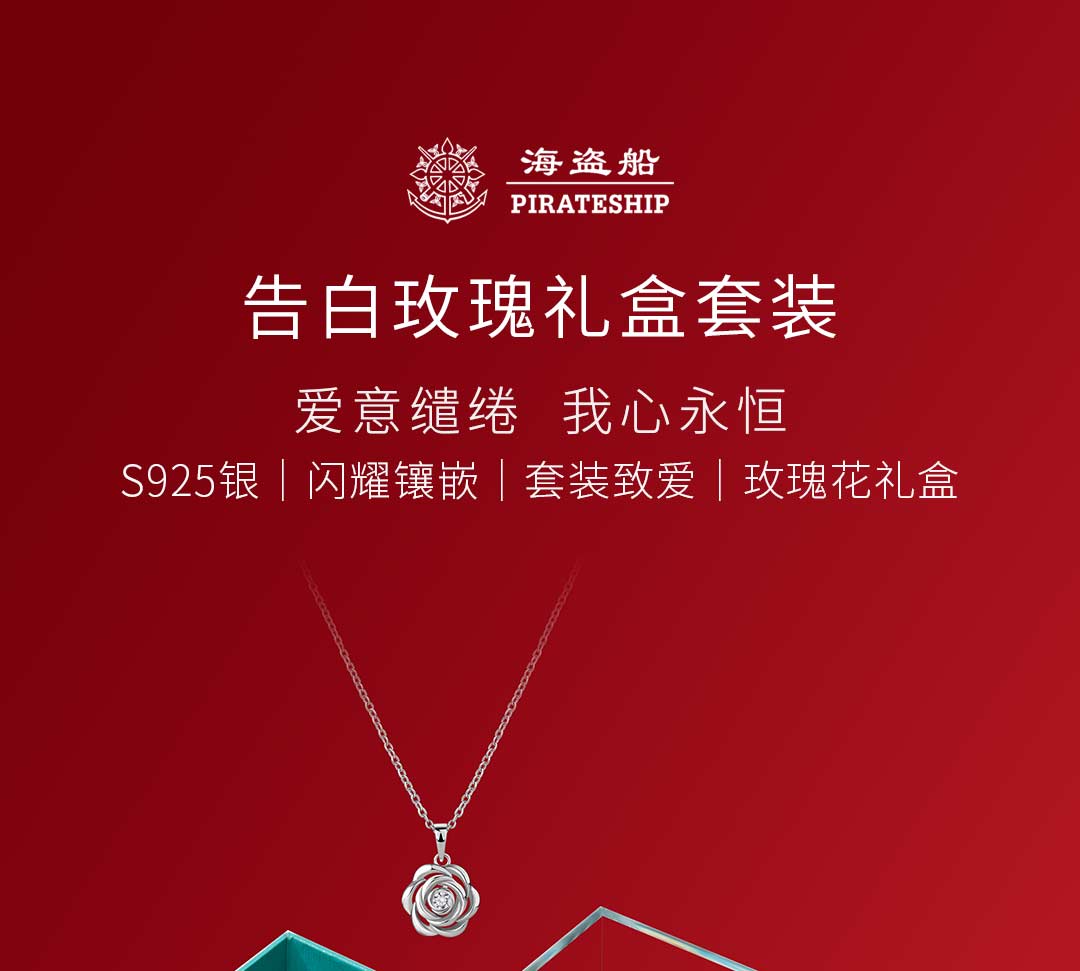 海盗船 告白玫瑰套装礼盒项链/耳钉