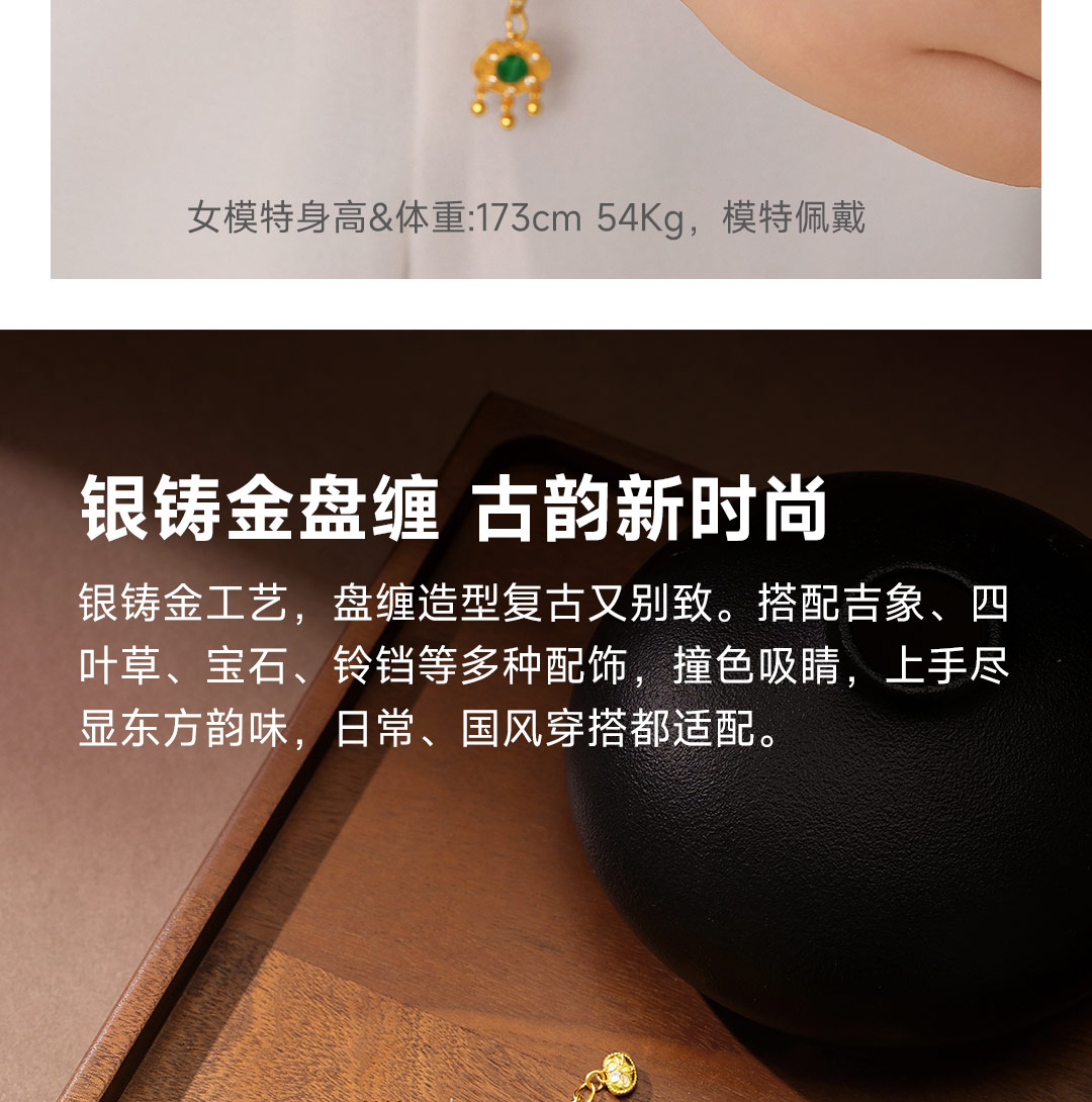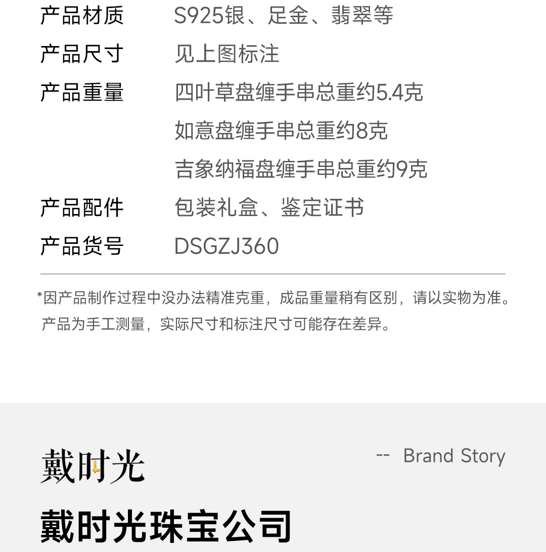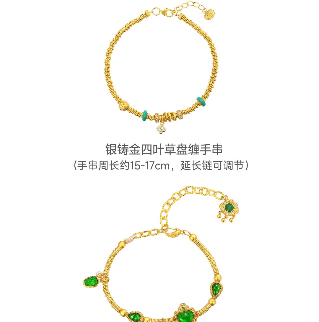 戴时光 银铸金四叶草盘缠手串(带延长链)