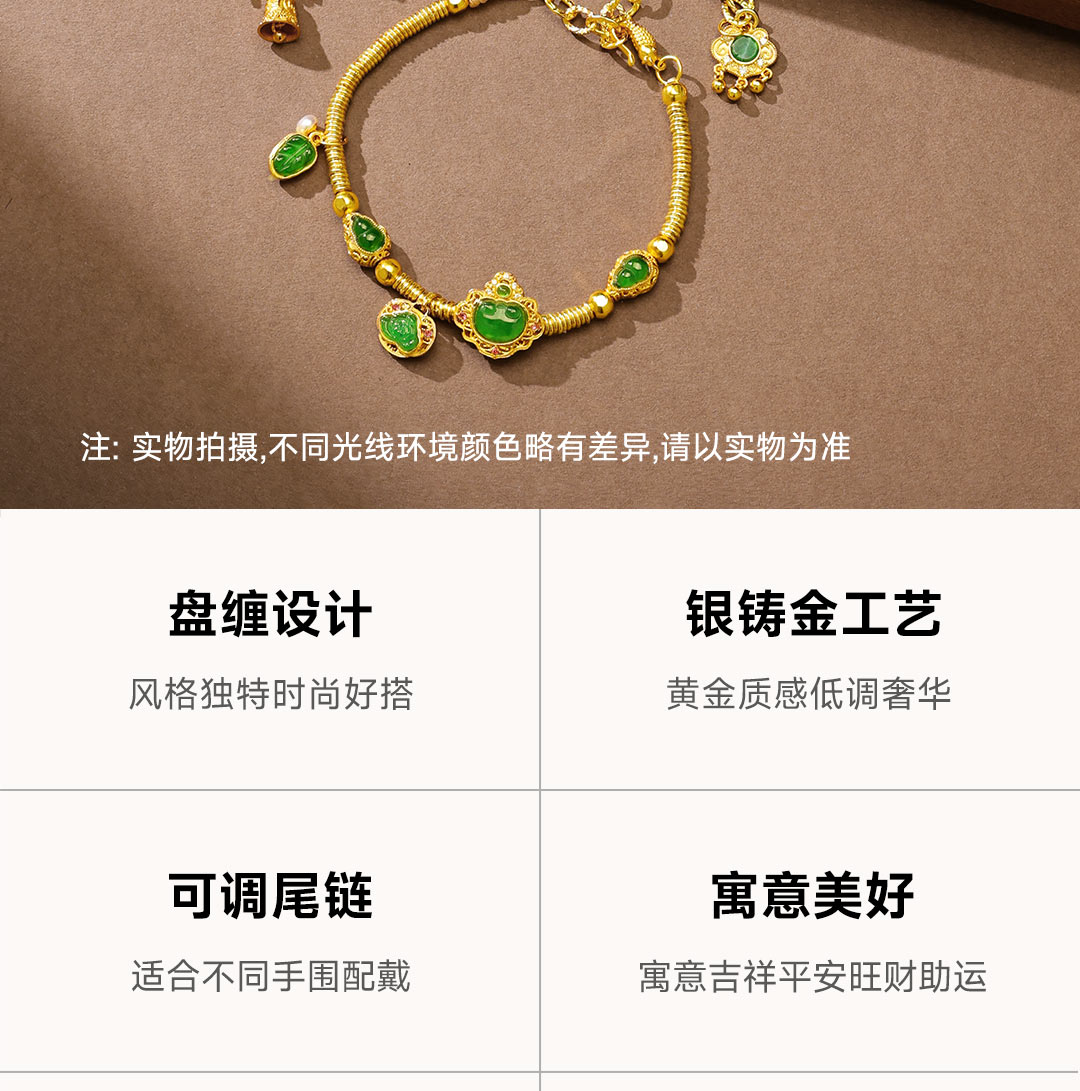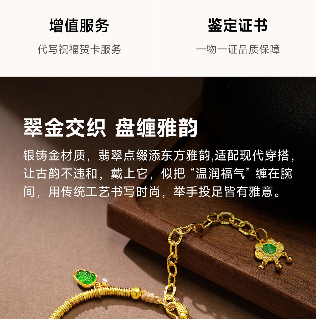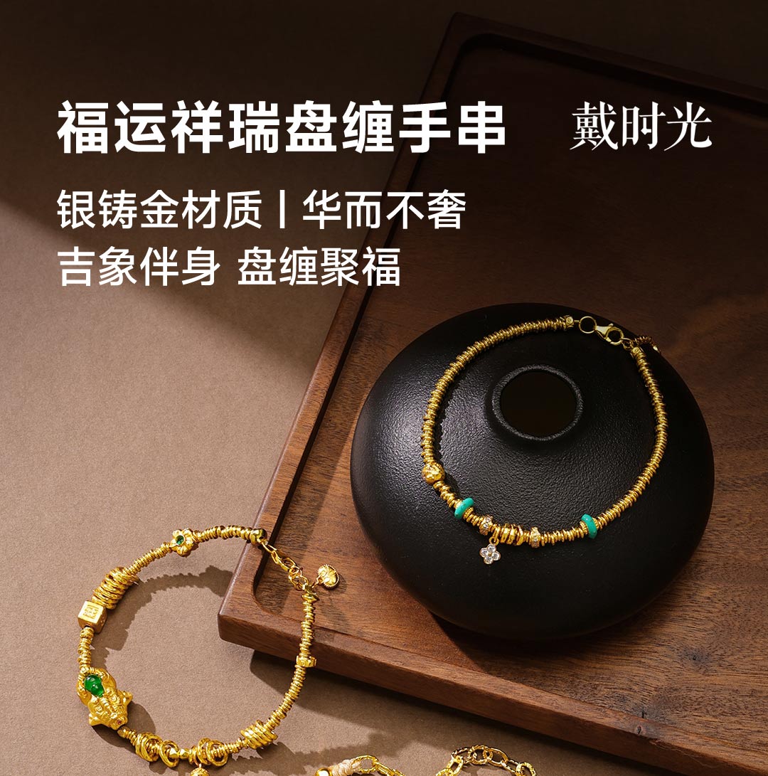 戴时光 银铸金四叶草盘缠手串(带延长链)