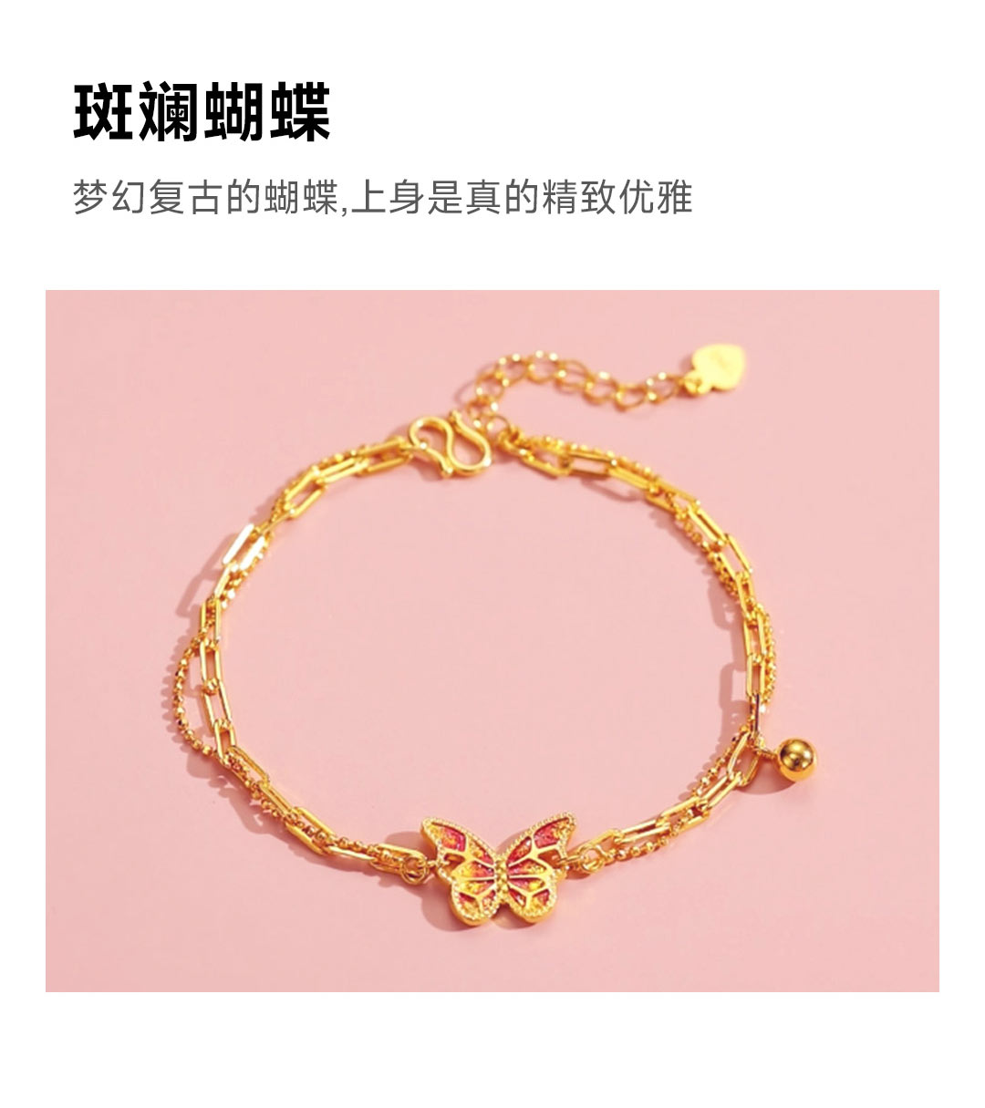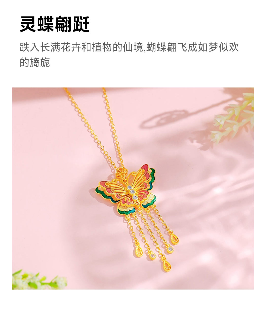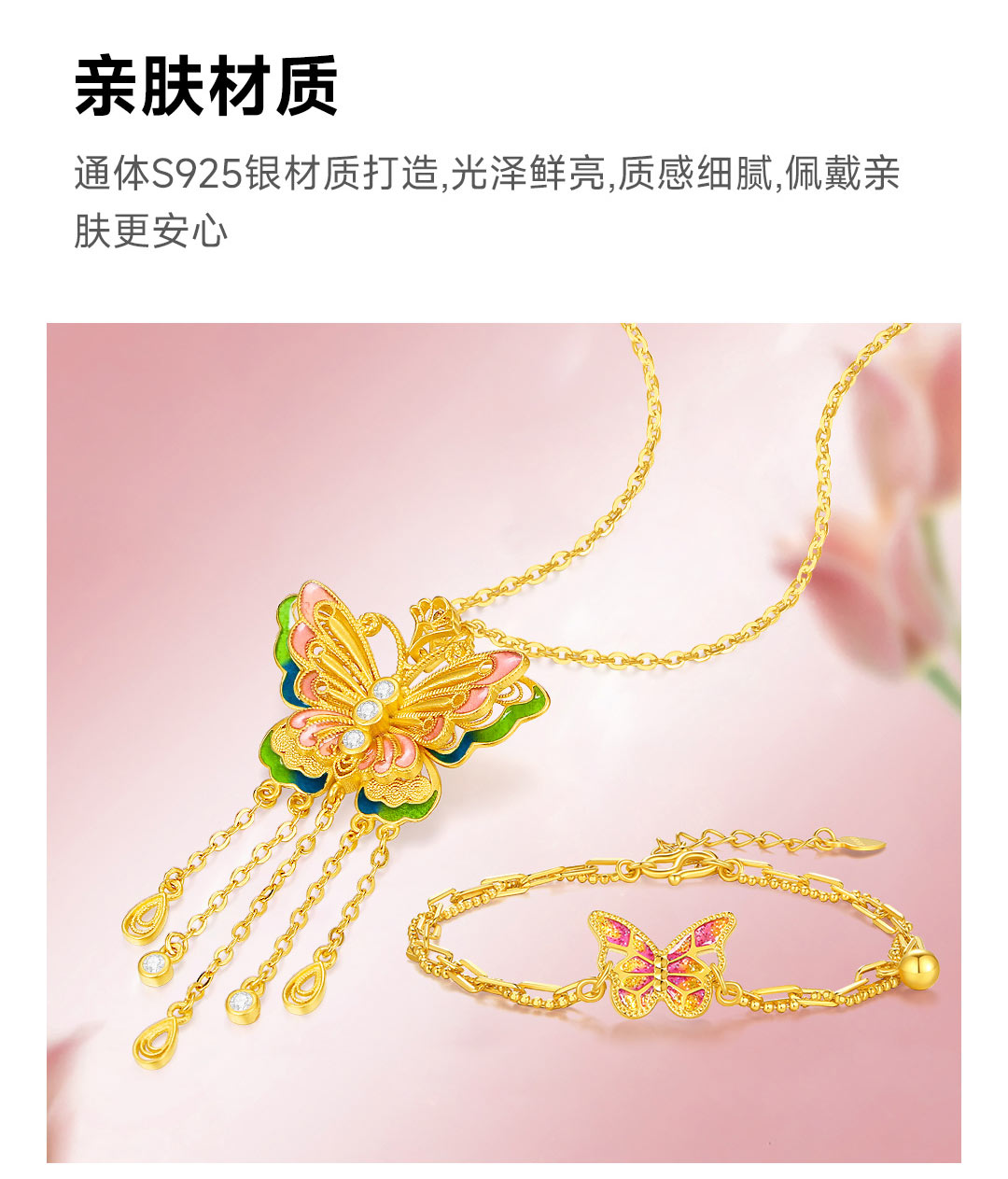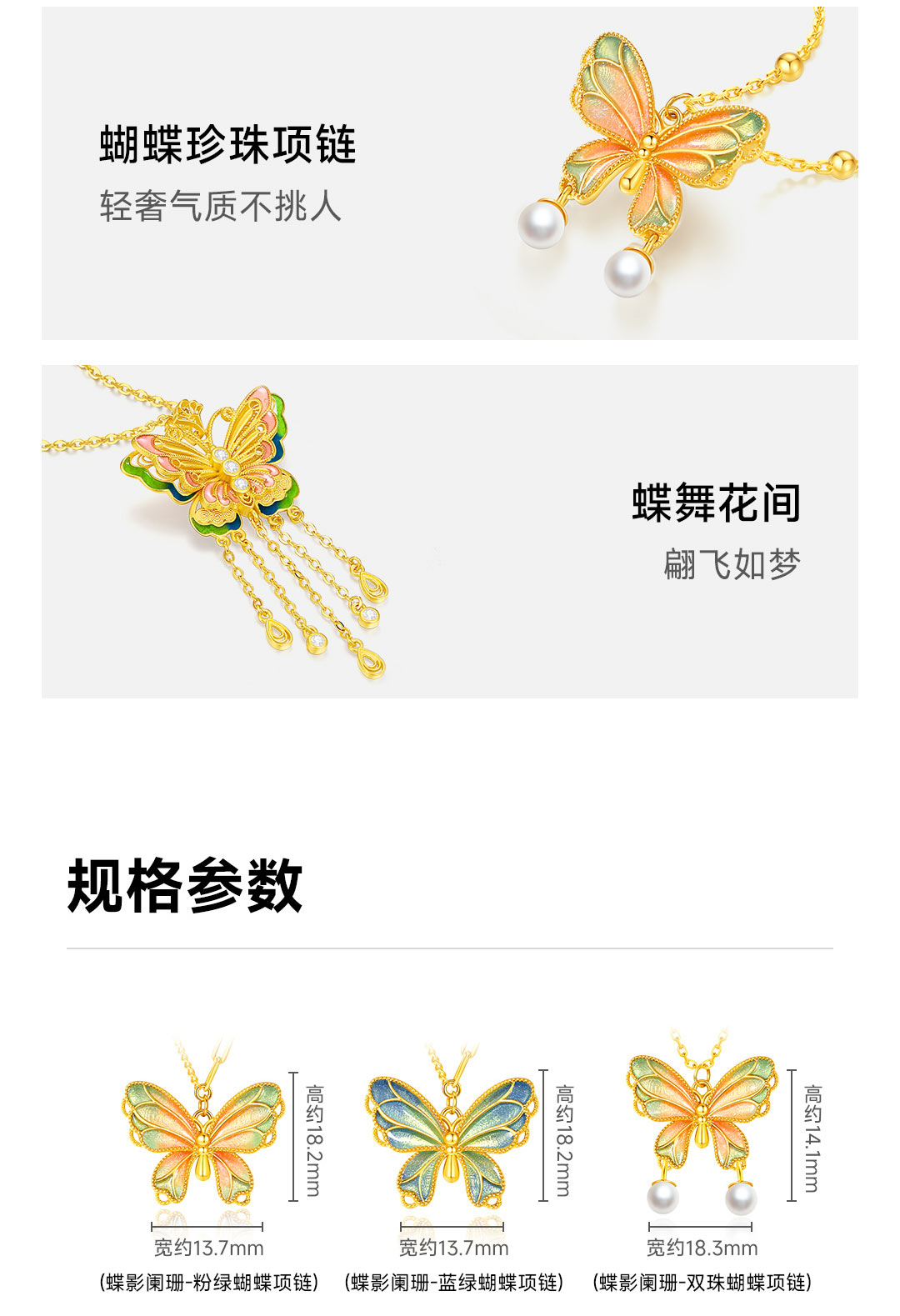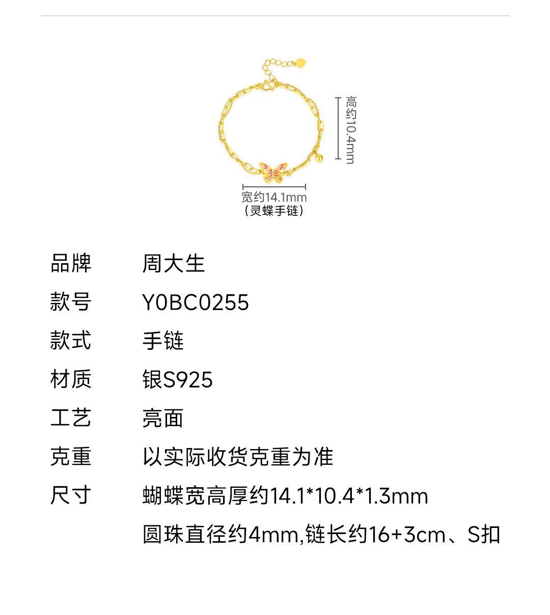 周大生 蝴蝶仙踪银项链手链系列 蝶影阑珊-粉绿蝴蝶项链 S1PC1490