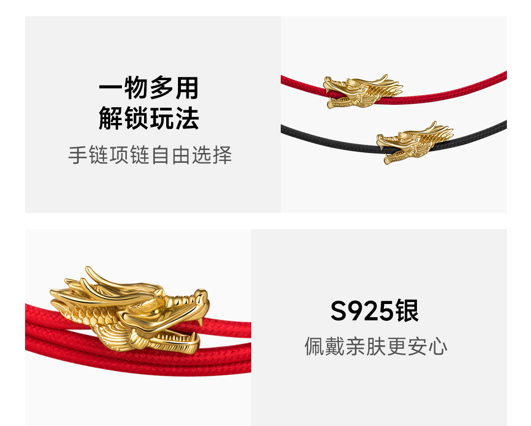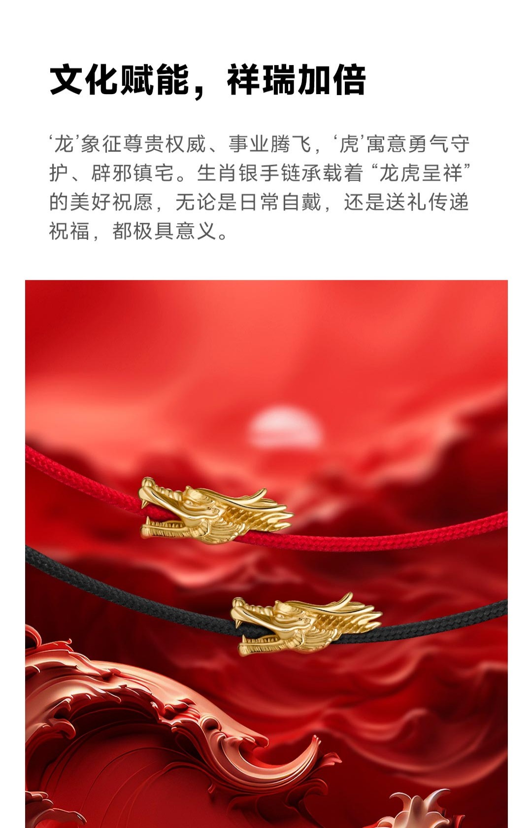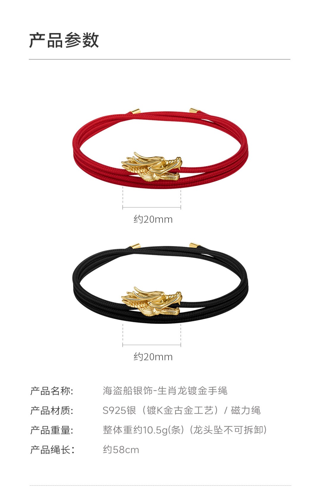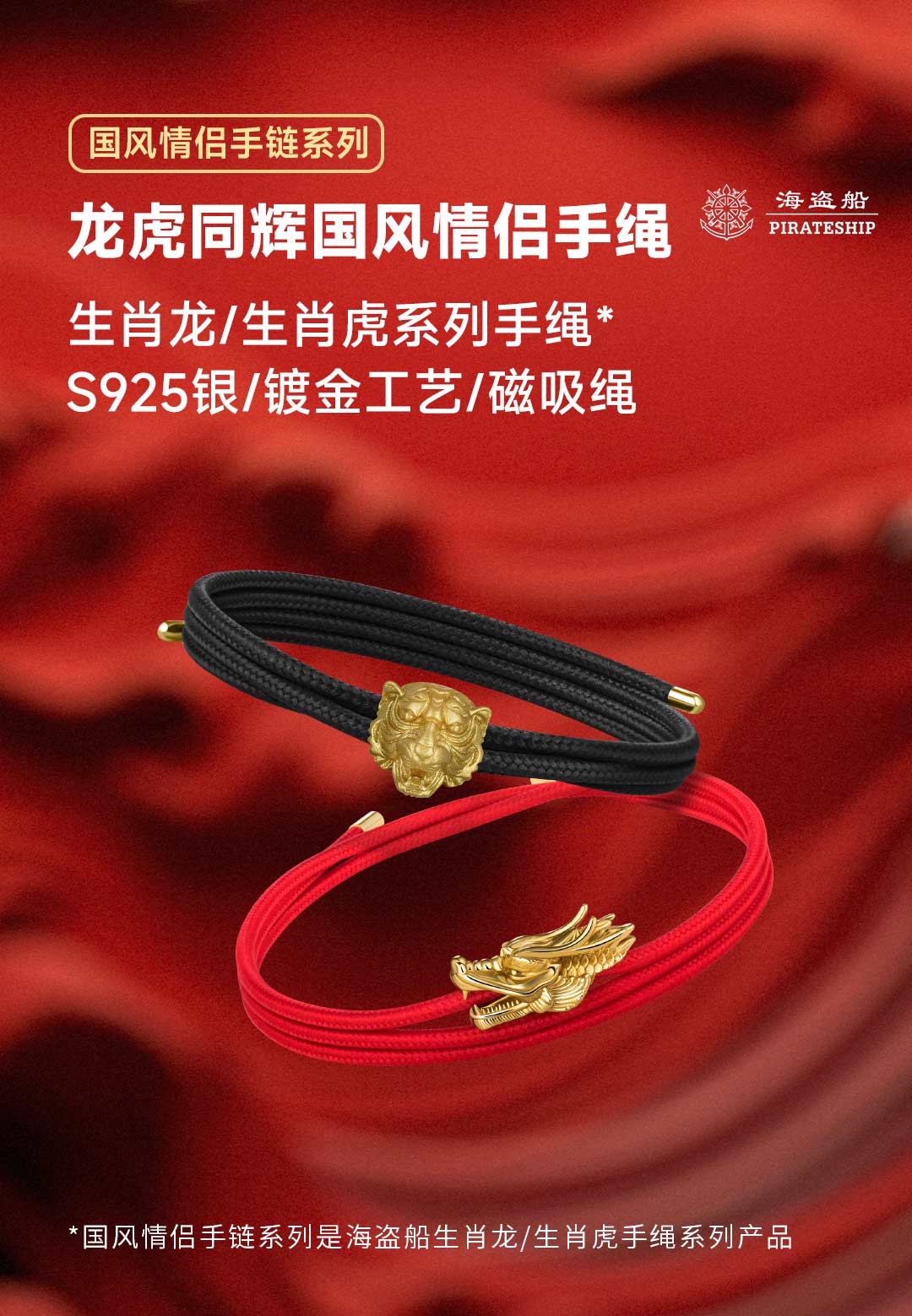 海盗船 龙虎同辉国风情侣手链 生肖龙红绳