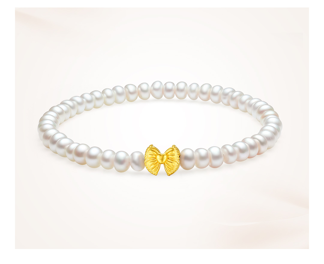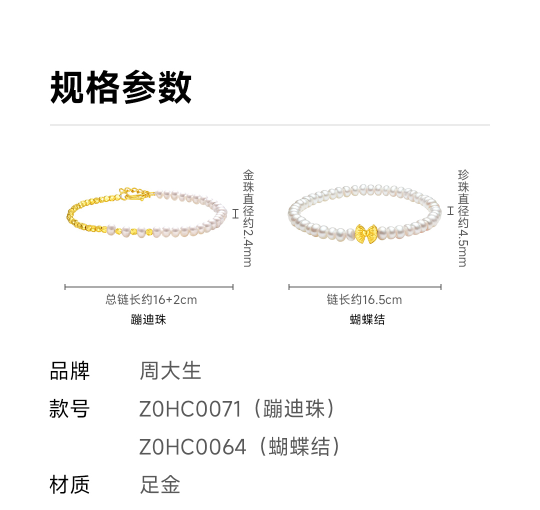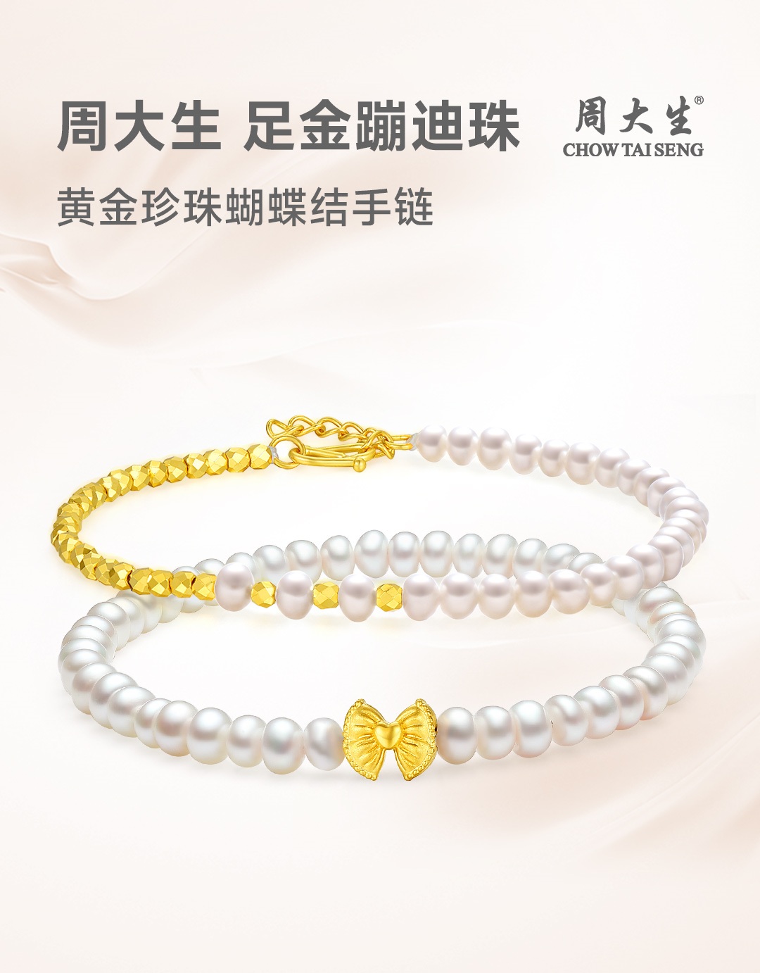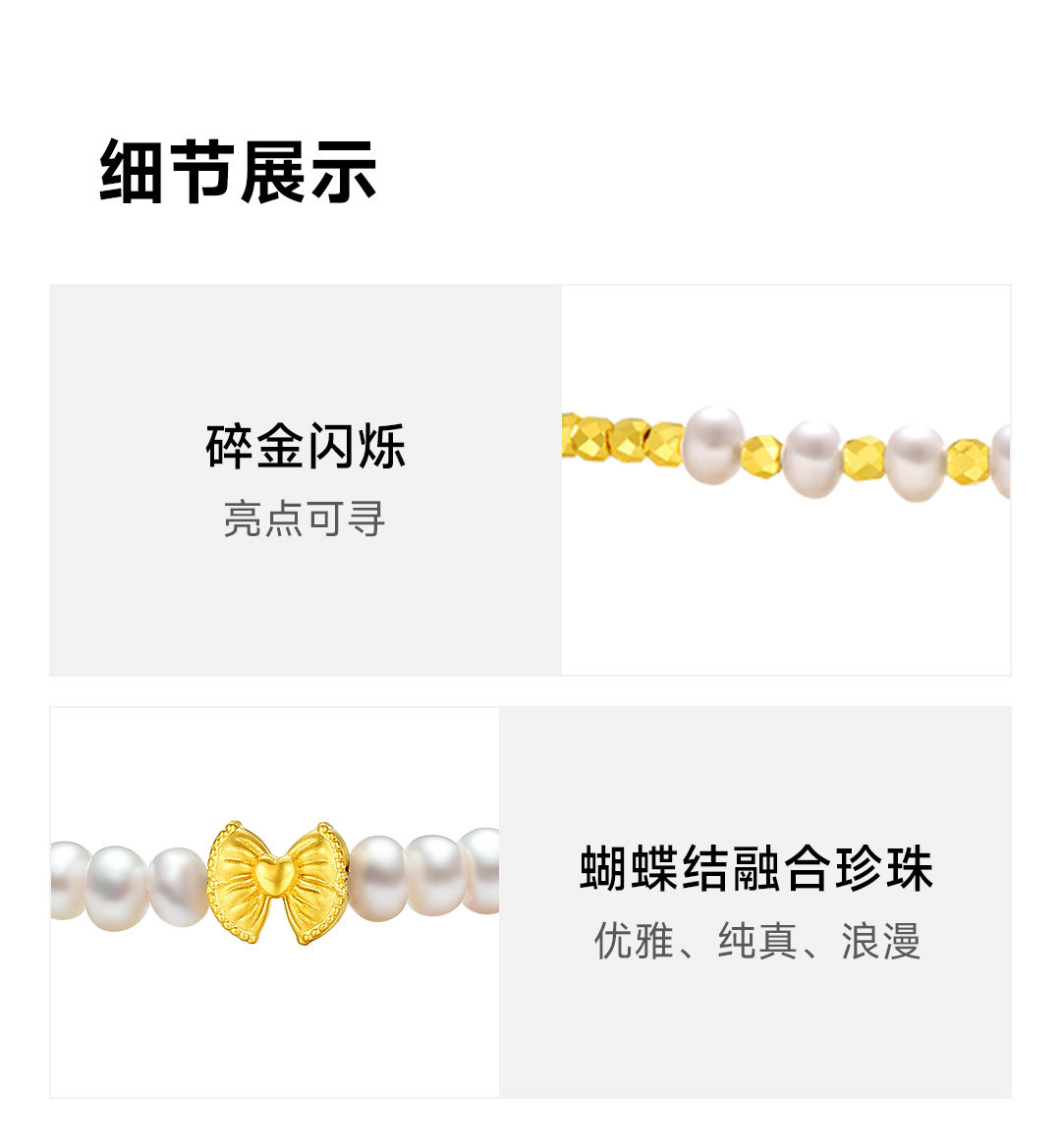 周大生 足金蹦迪珠黄金珍珠蝴蝶结手链 蝴蝶结手链 约0.25g(具体以实际收货克重为准) Z0HC0064