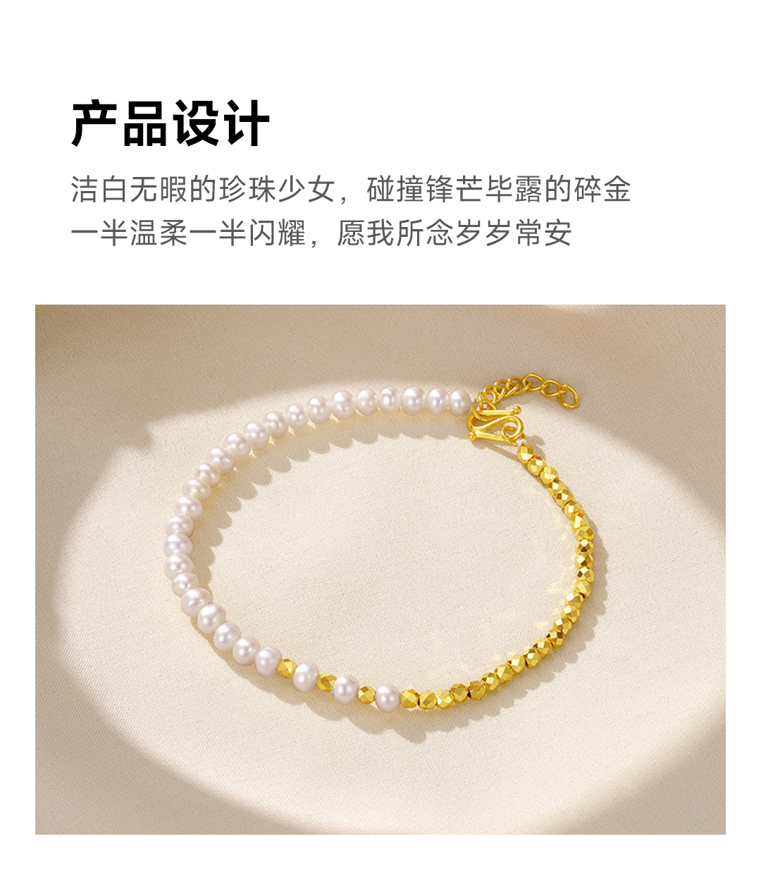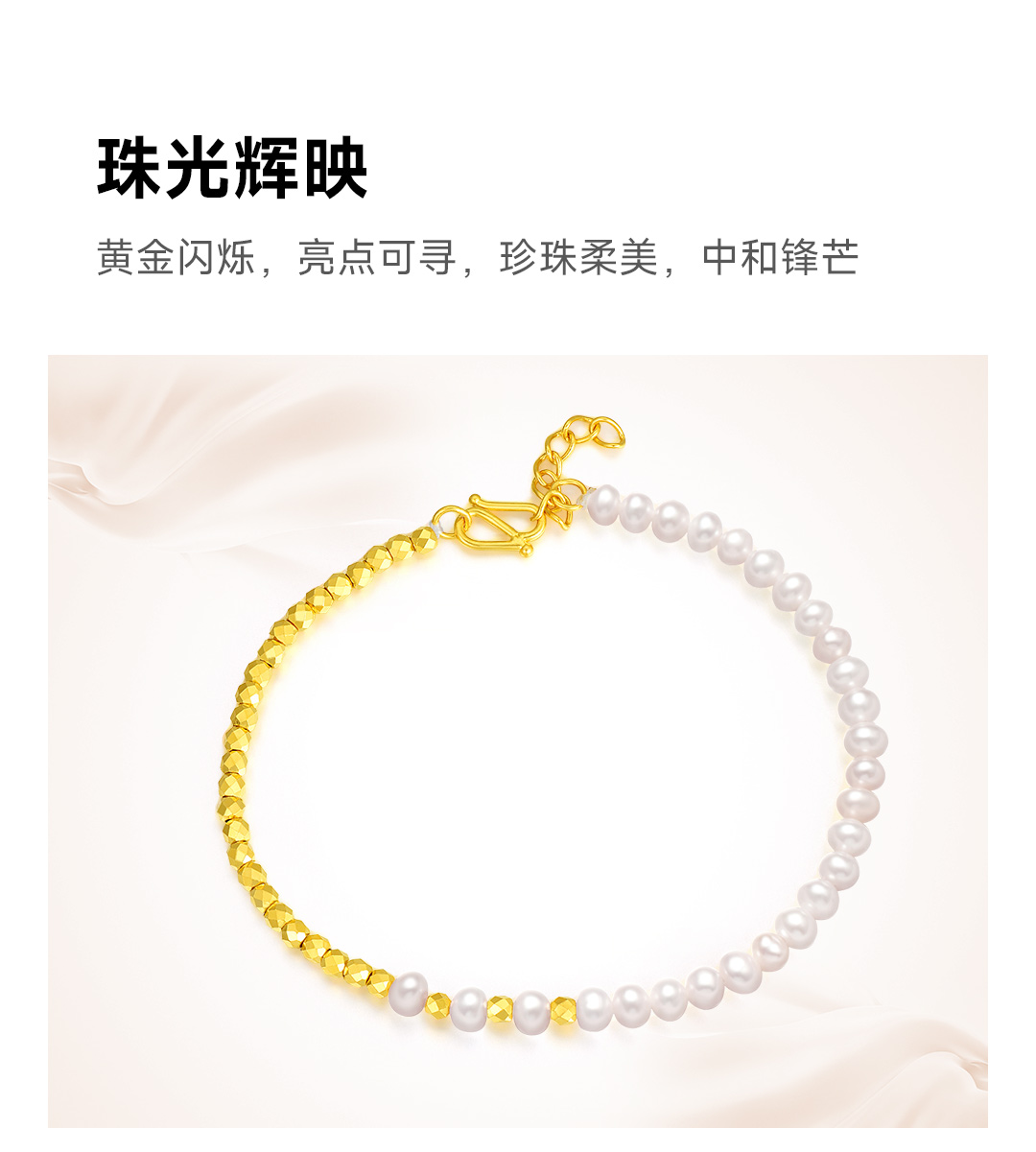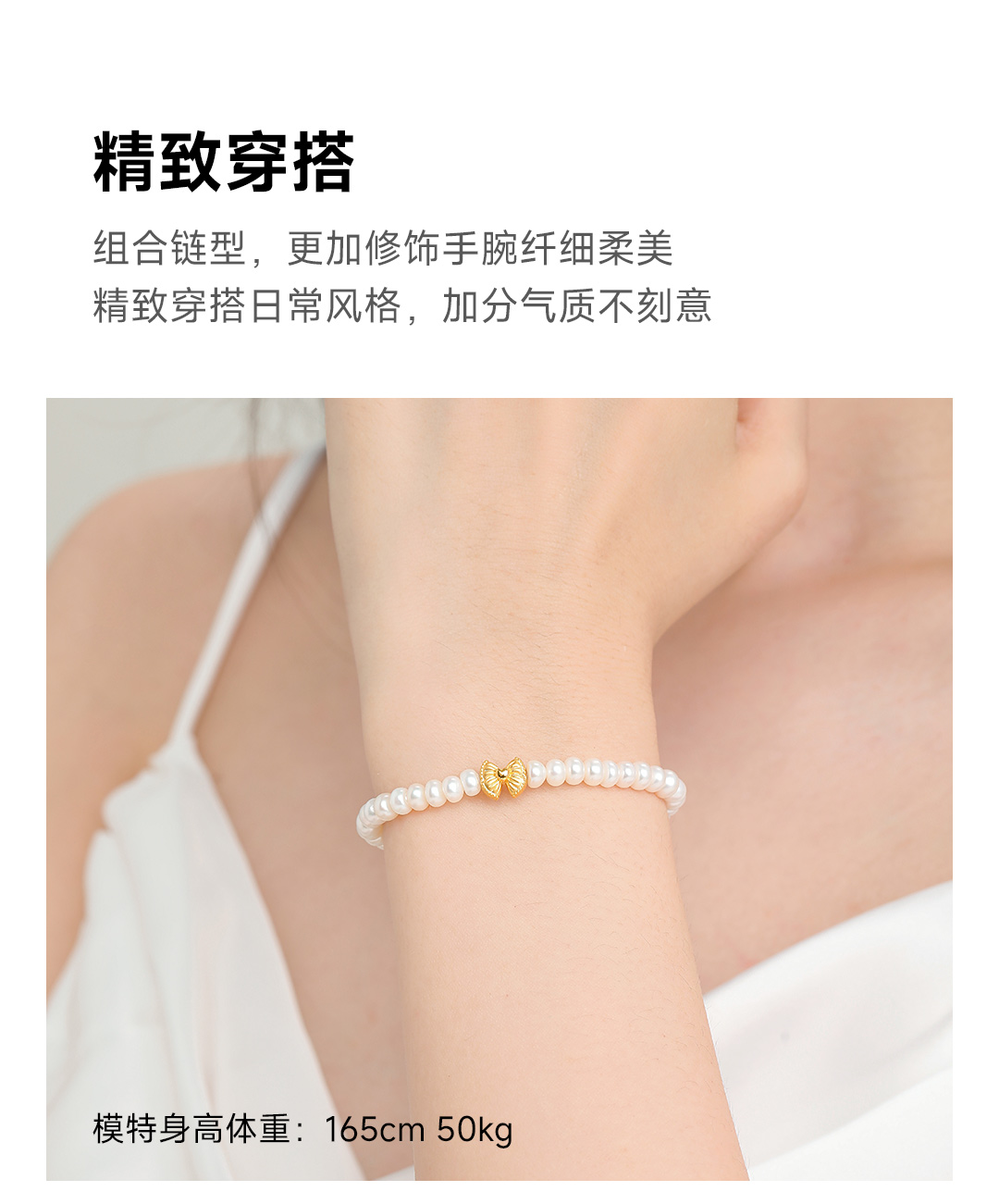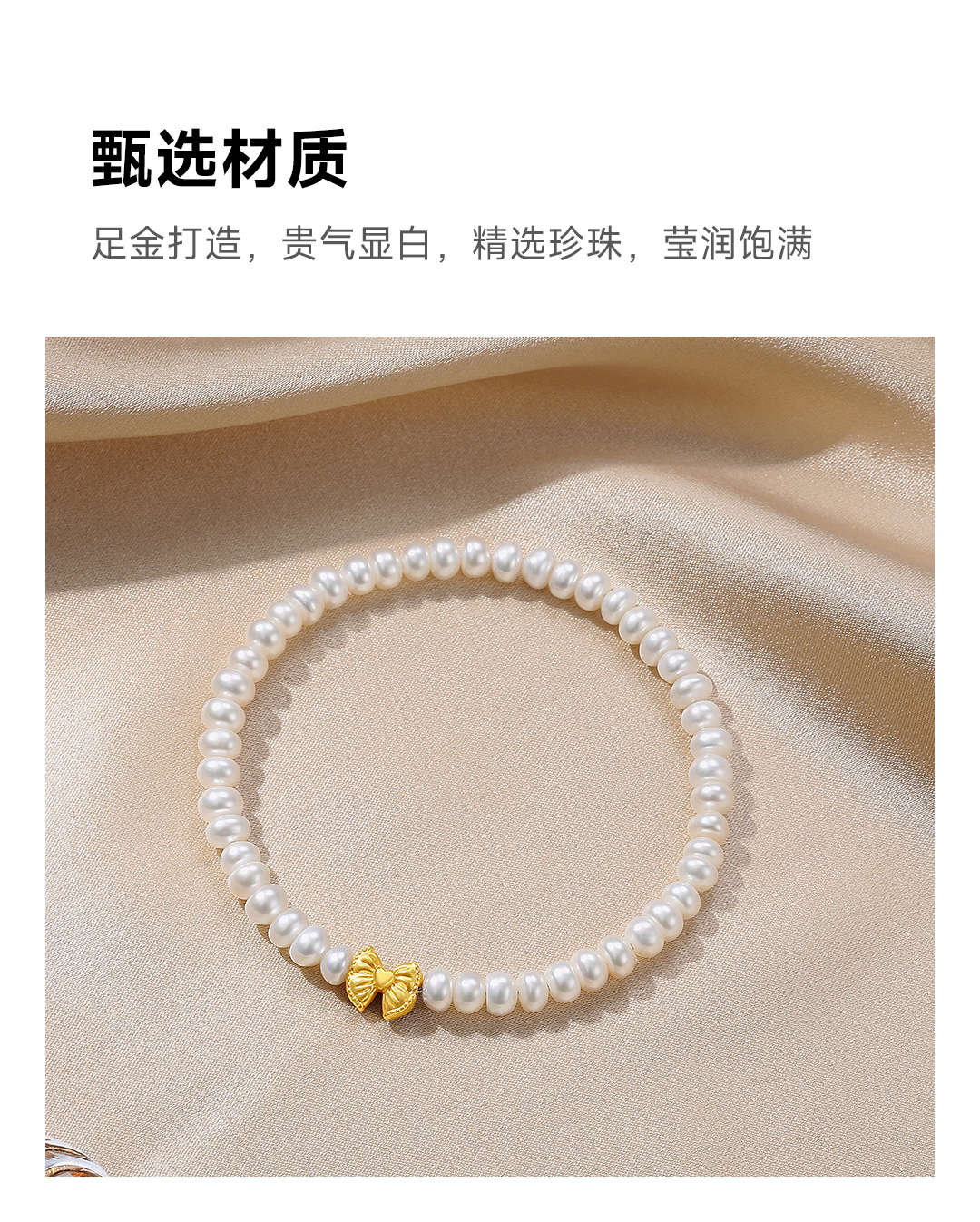 周大生 足金蹦迪珠黄金珍珠蝴蝶结手链 蝴蝶结手链 约0.25g(具体以实际收货克重为准) Z0HC0064