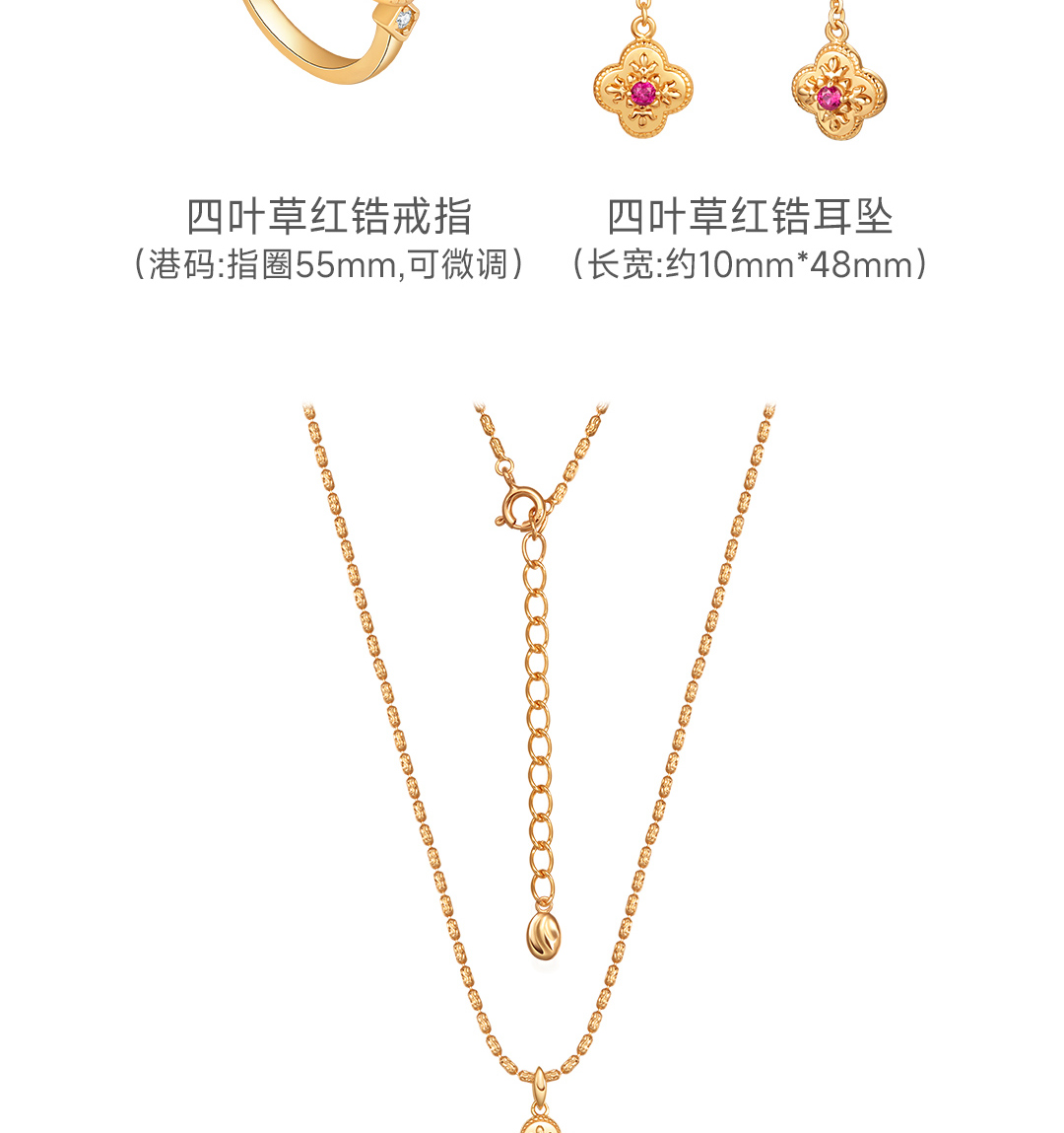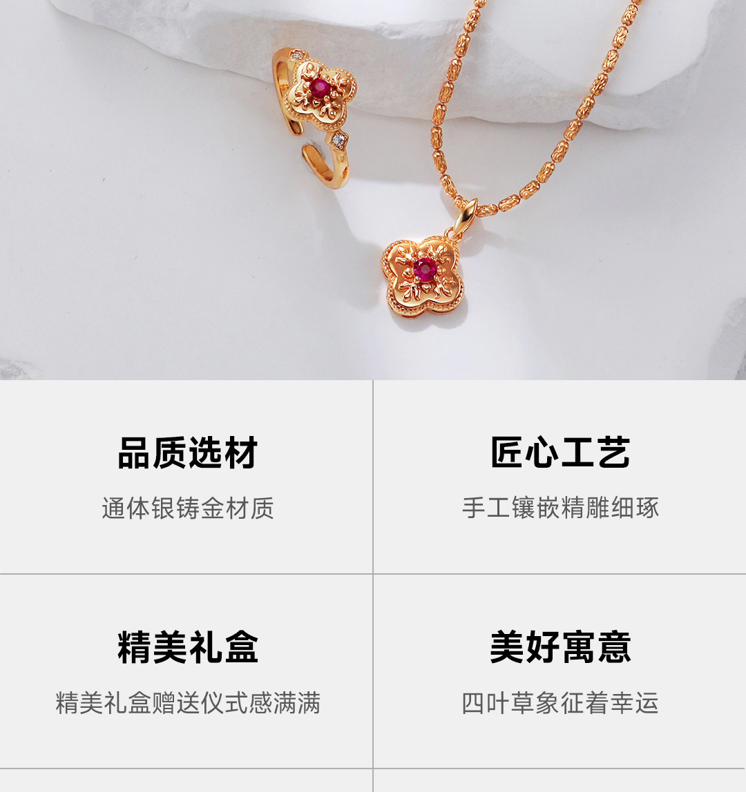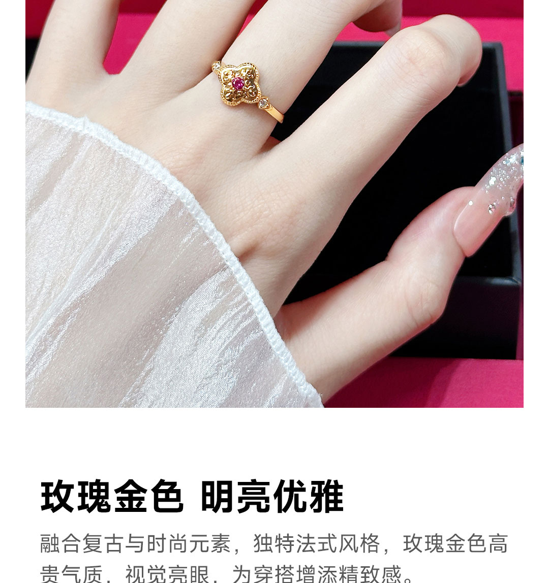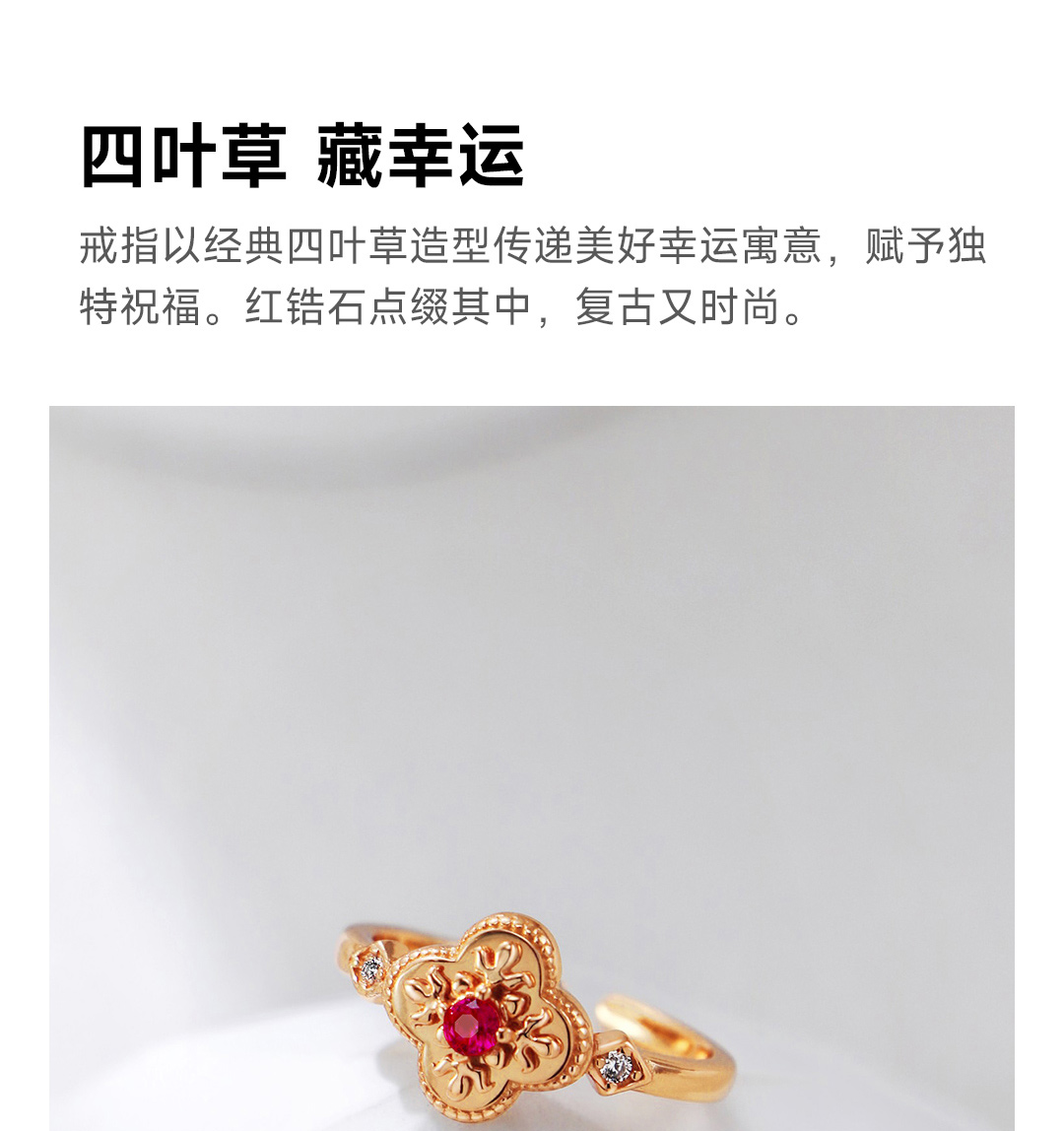 月华初生 四叶草红锆戒指(港码55mm指圈,可微调)