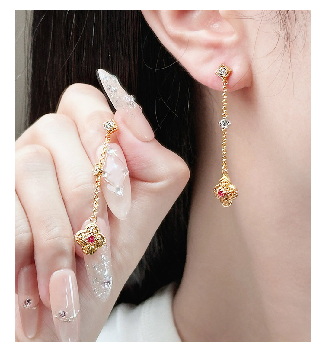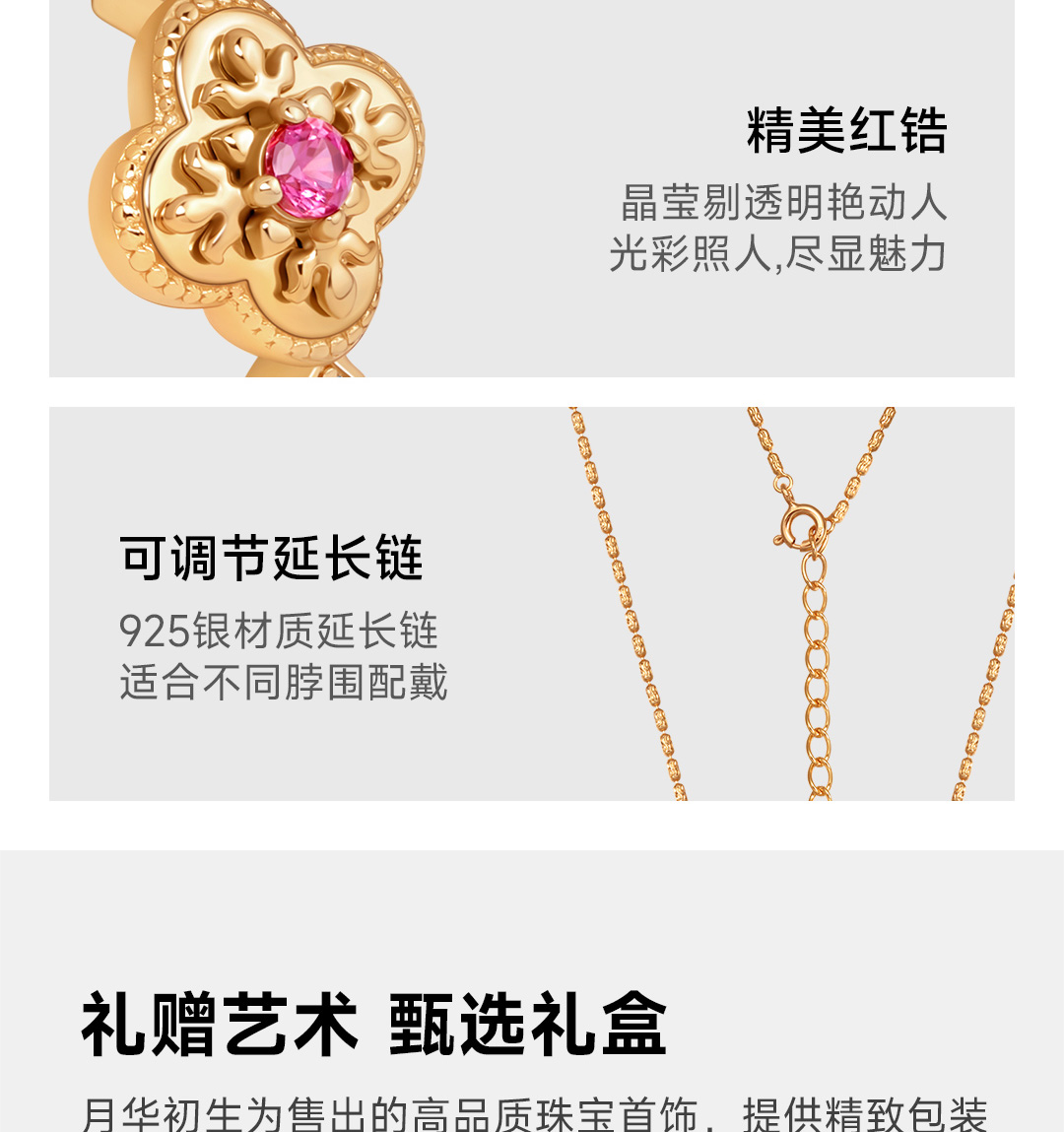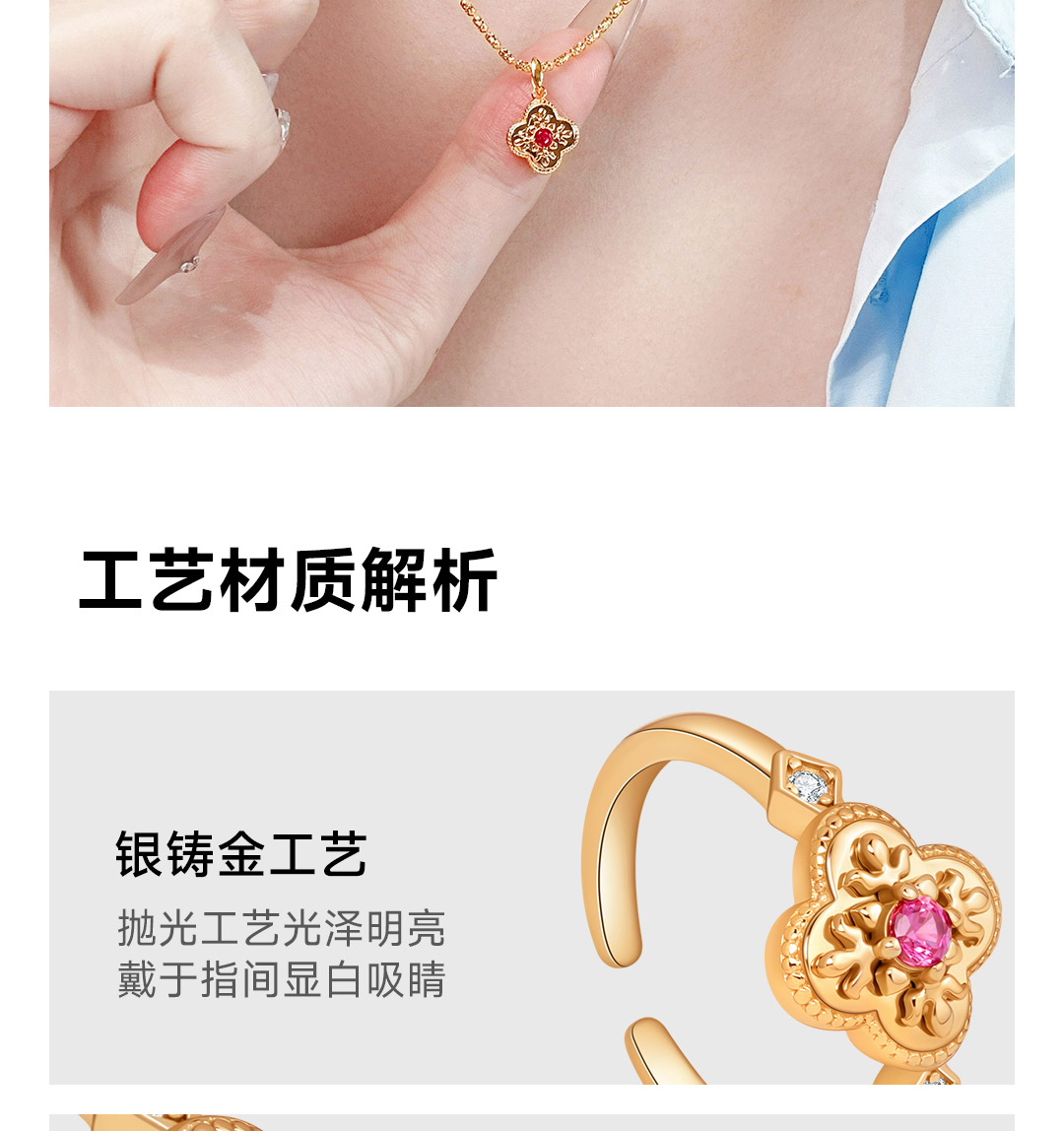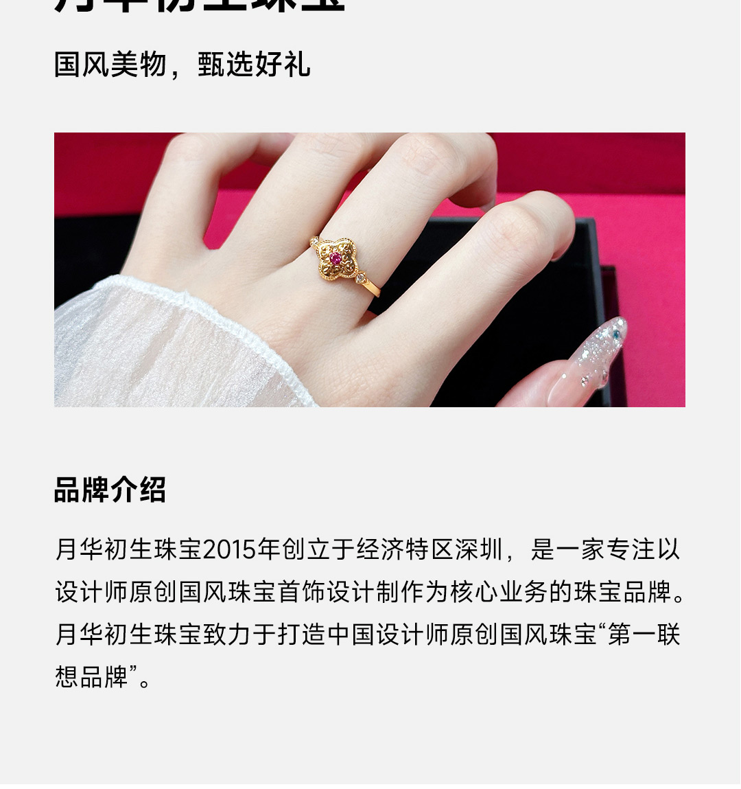 月华初生 四叶草红锆戒指(港码55mm指圈,可微调)