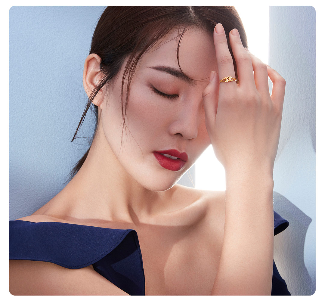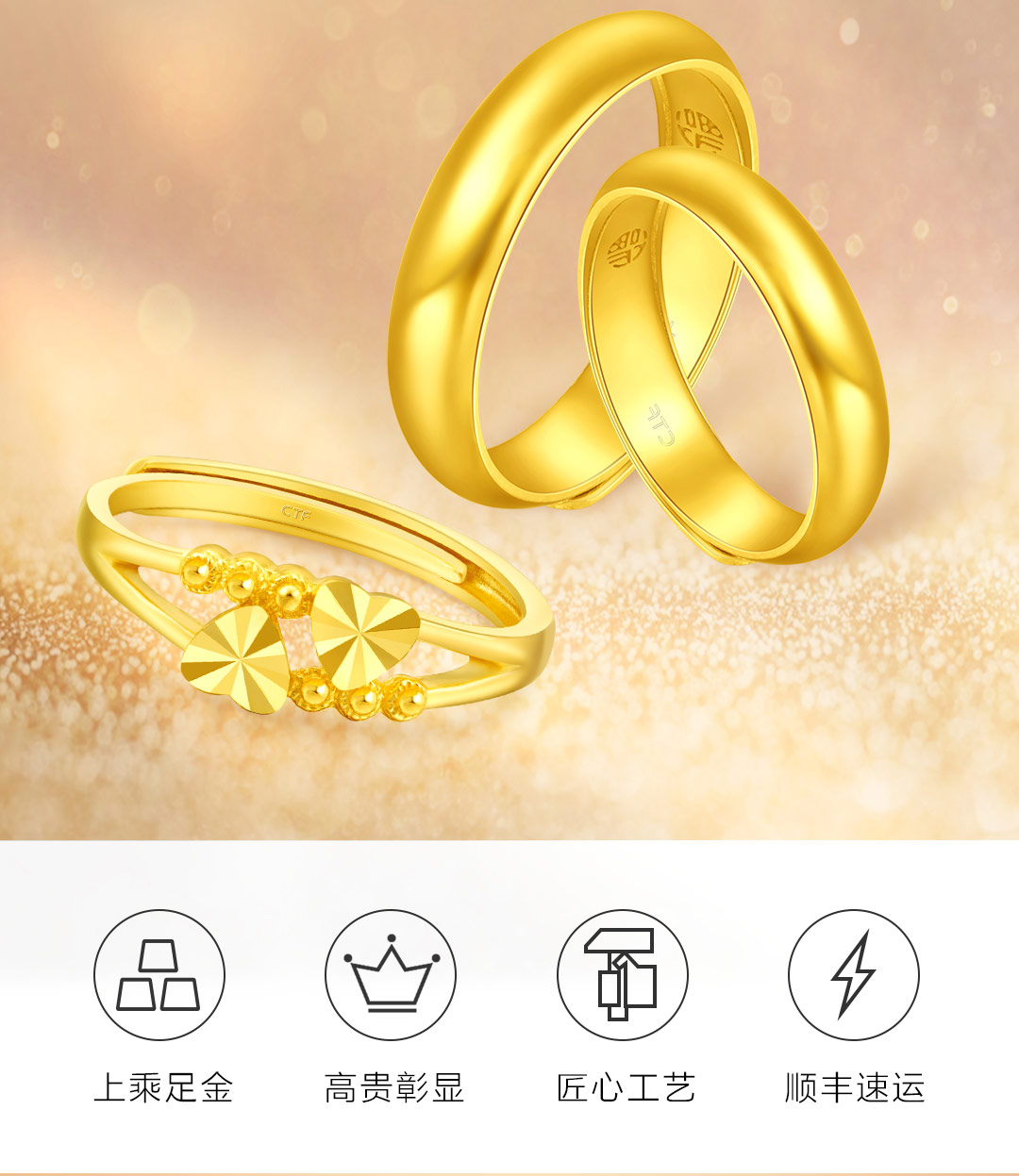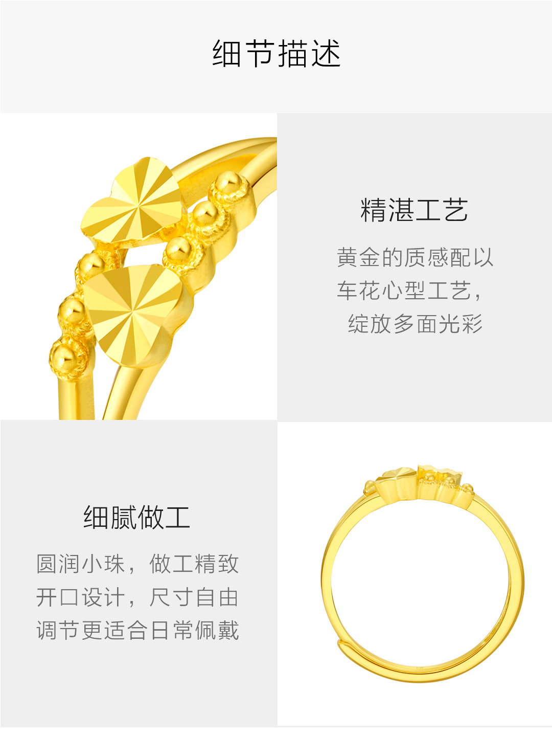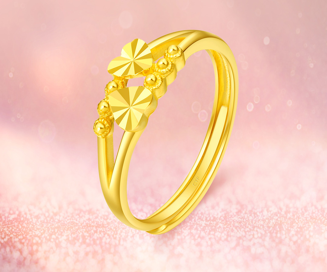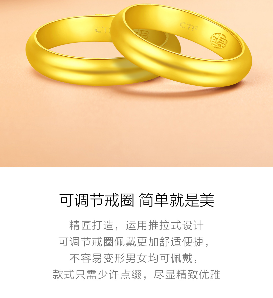 周大福 心心相印足金戒指情侣对戒礼物 EOF134-足金戒指(男女均适合,可调节戒圈)-工费180元-克重5.75g