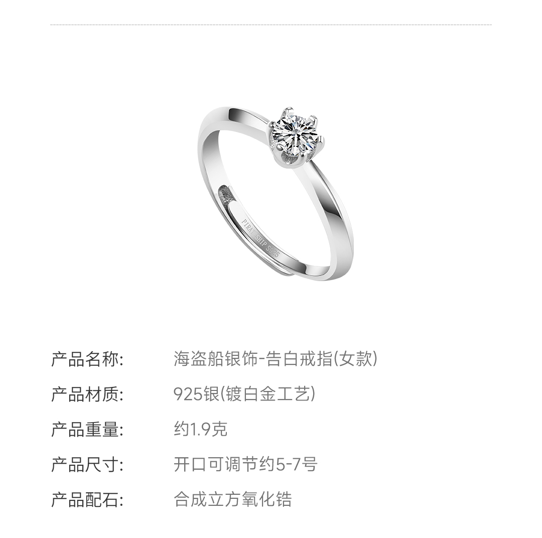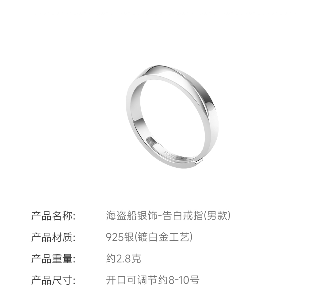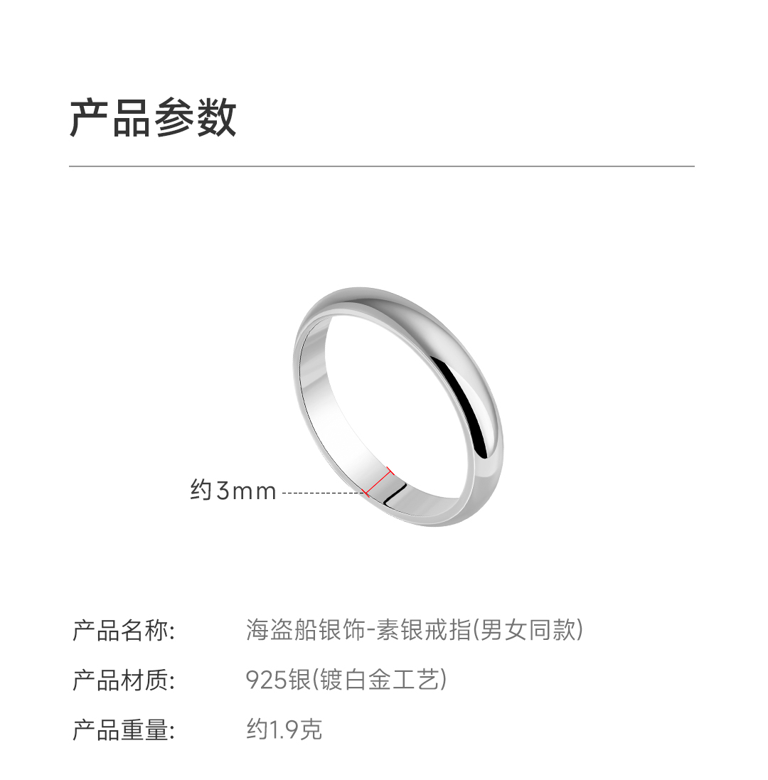 海盗船 简单爱纯净戒指5号